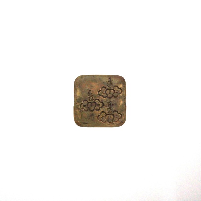 アンティーク 桐模様の金具(角形)d4.9cm Antique Japanese Metal Plate, Carved Chrysanthemums Design