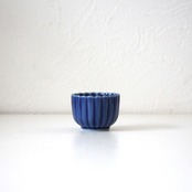 A charming chrysanthemum shaped small cup in dark blue glaze.