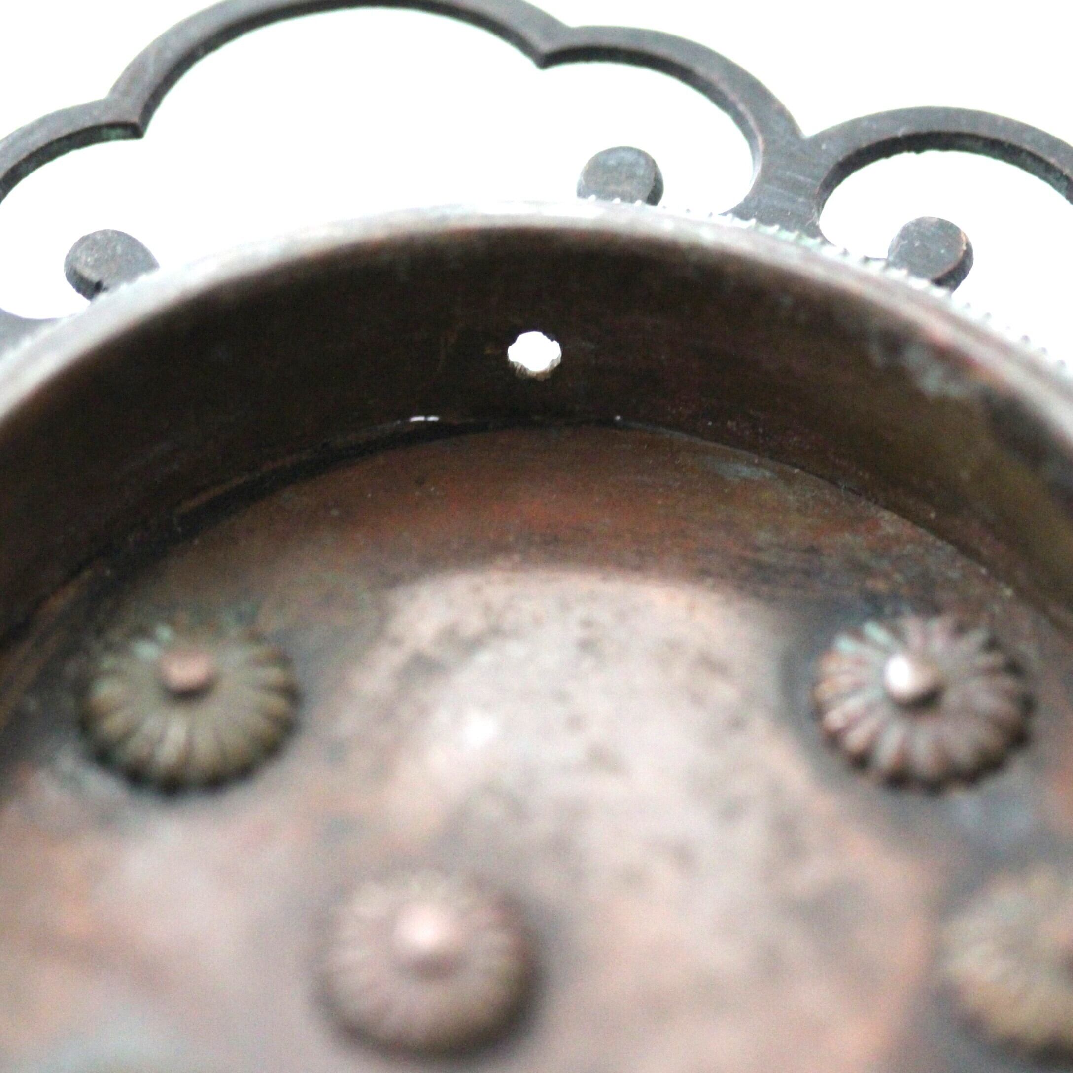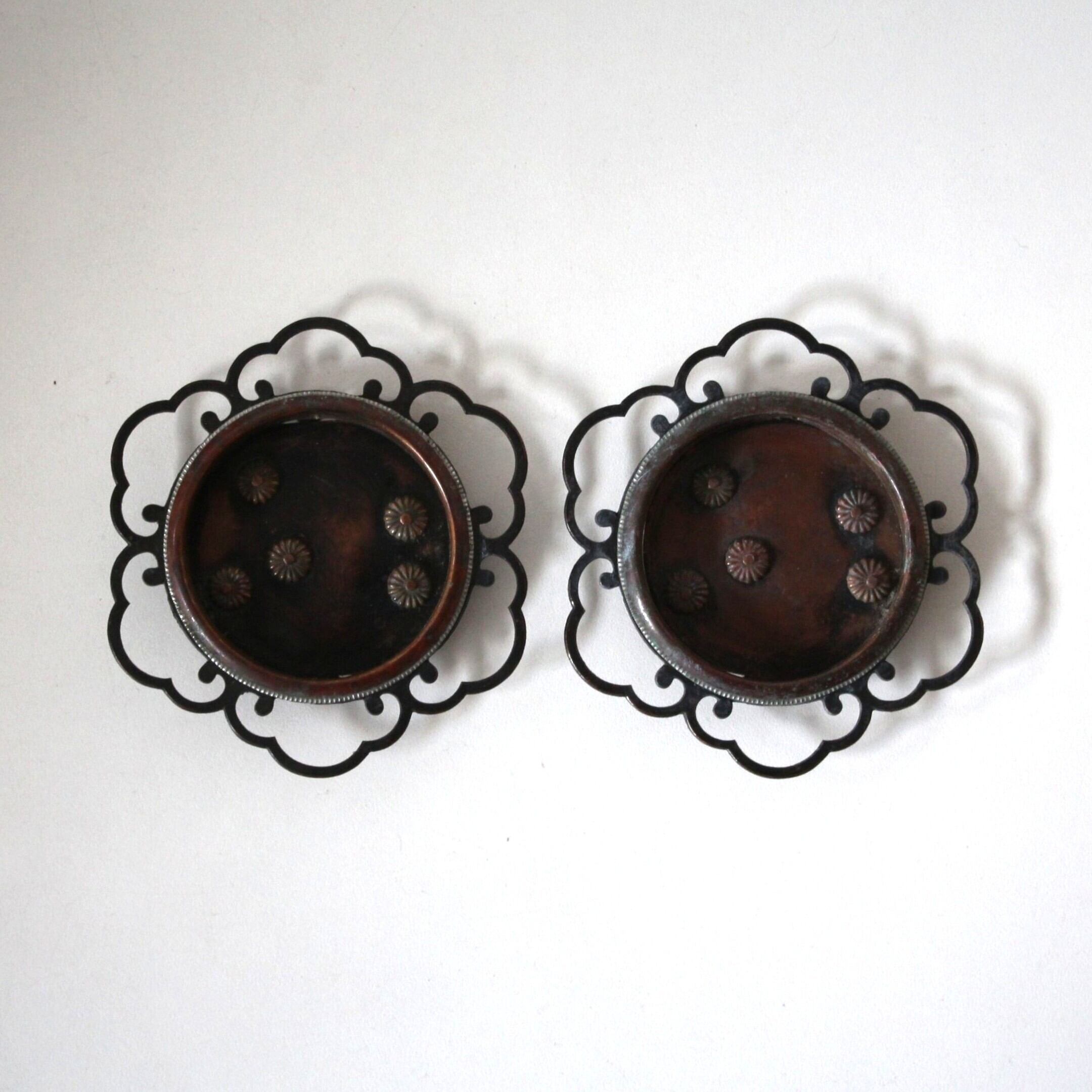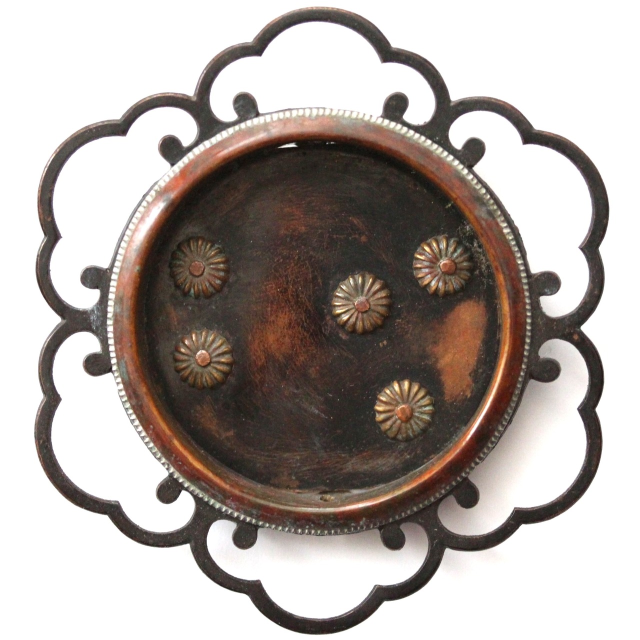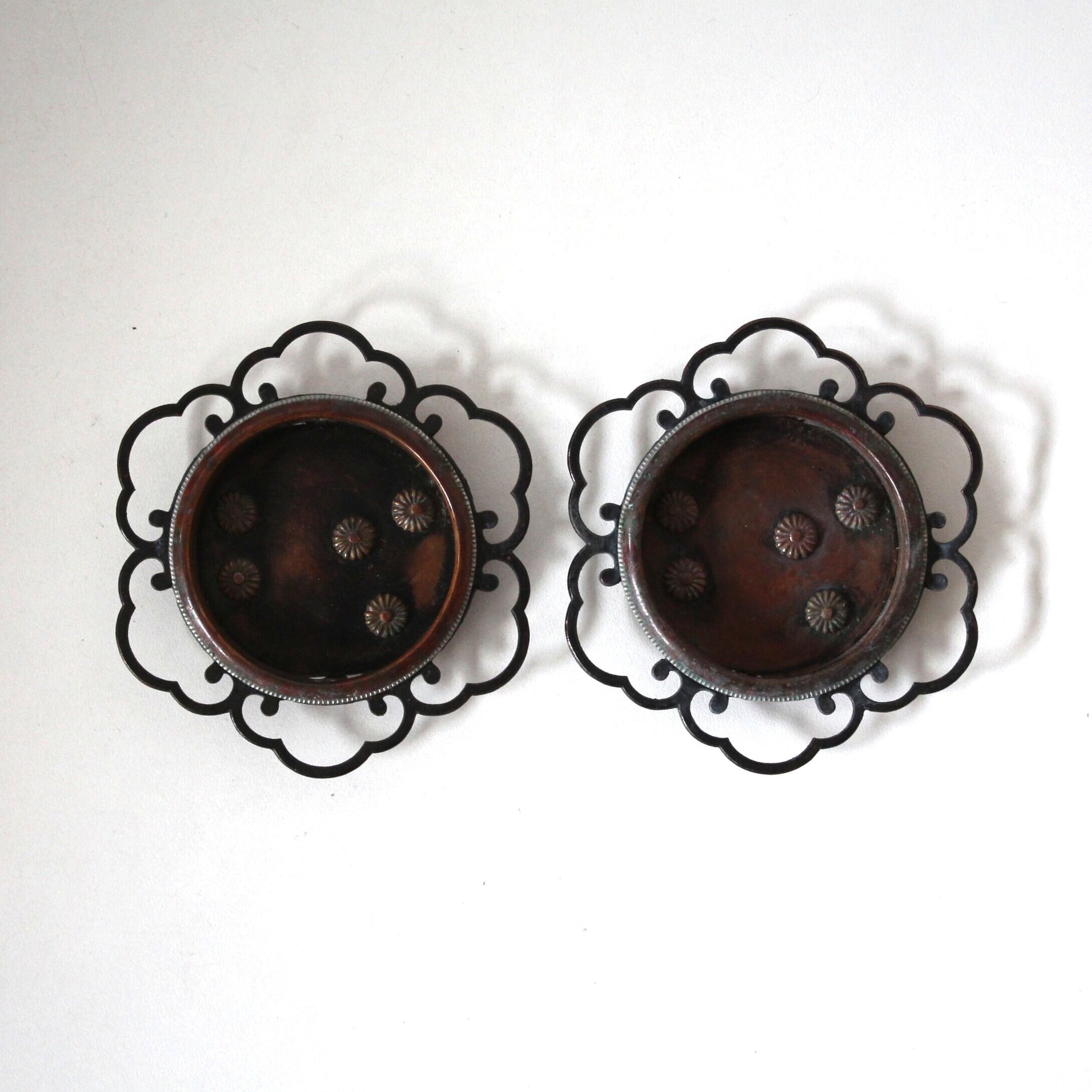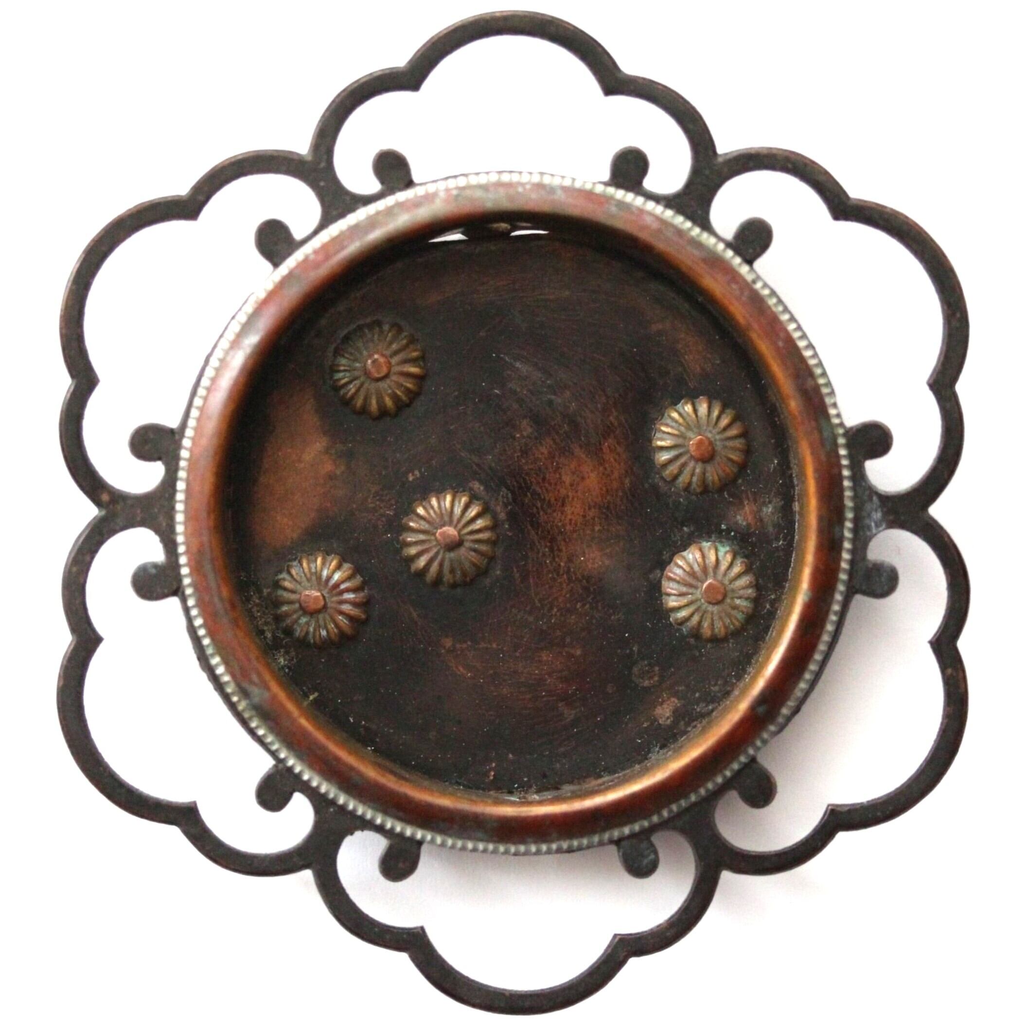 アンティーク 銅製の菊模様の引手(一対)d8.8cm Antique Japanese Copper Flower Shaped Hikite Door Pull Handles, Chrysanthemums Design | monotone