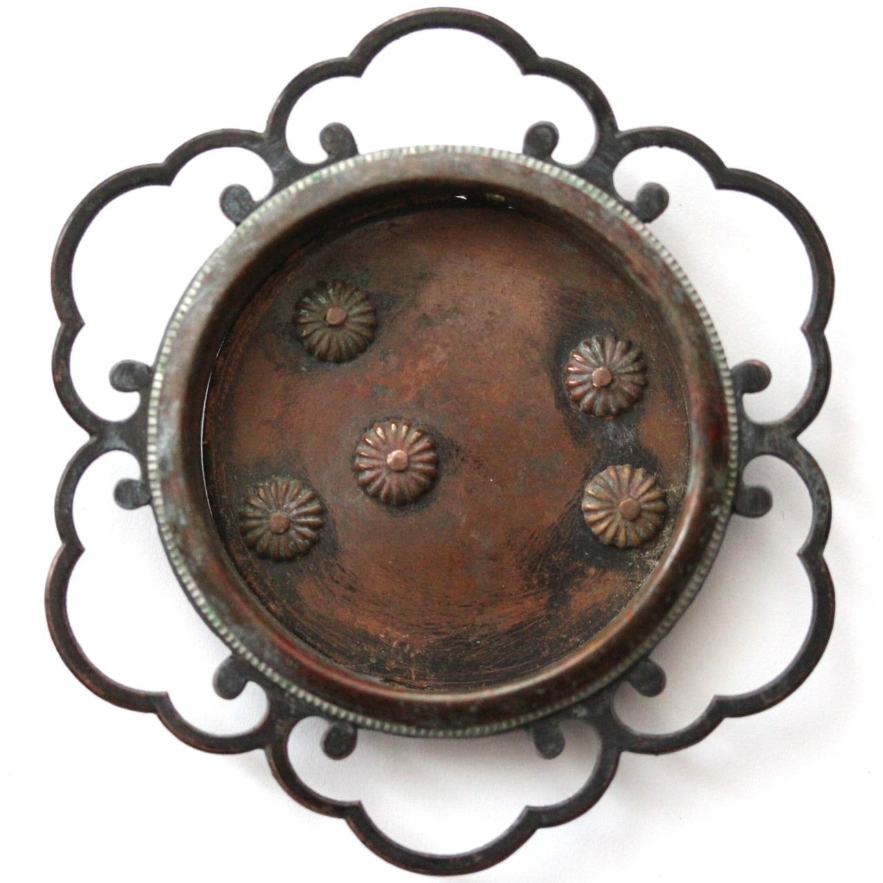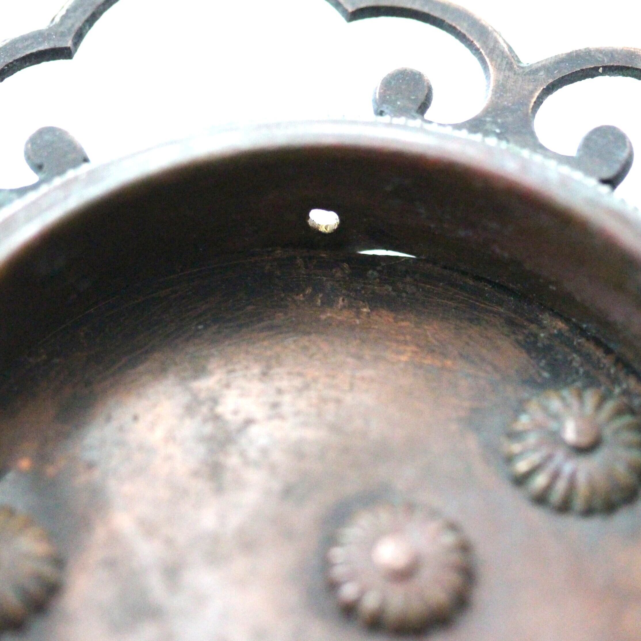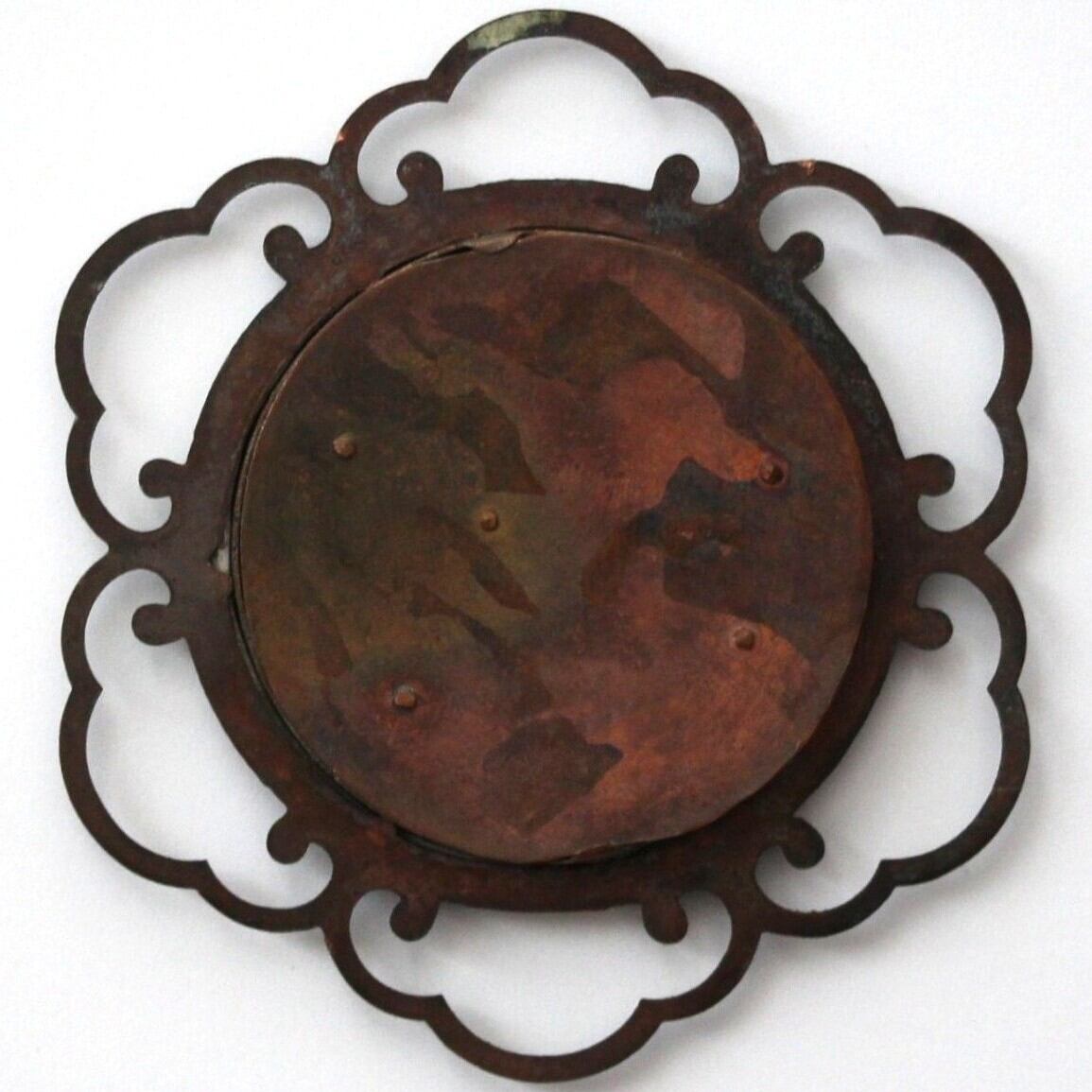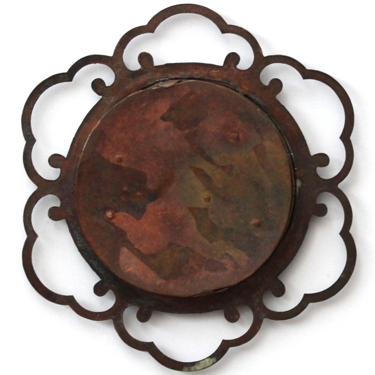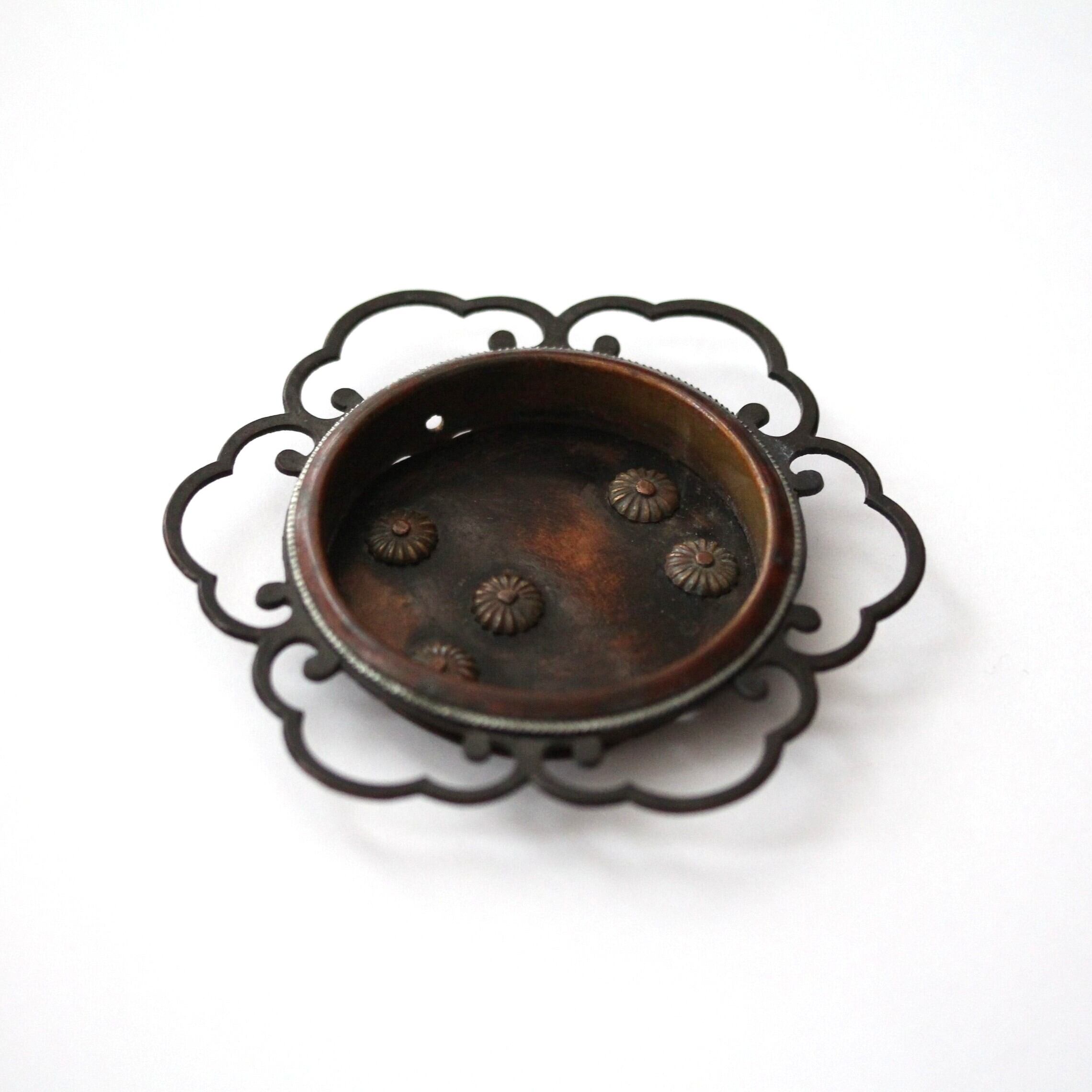 アンティーク 銅製の菊模様の引手(一対)d8.8cm Antique Japanese Copper Flower Shaped Hikite Door Pull Handles, Chrysanthemums Design | monotone