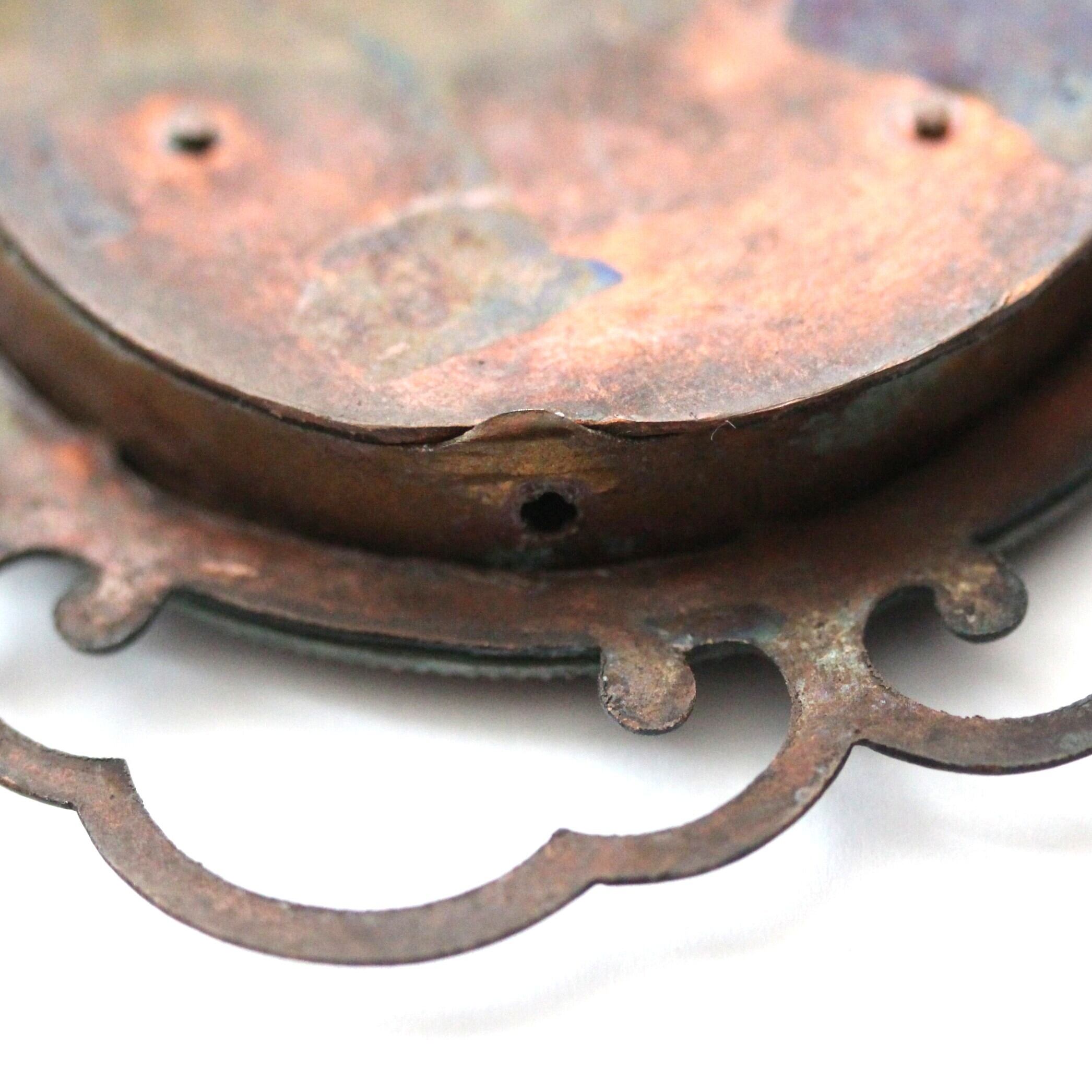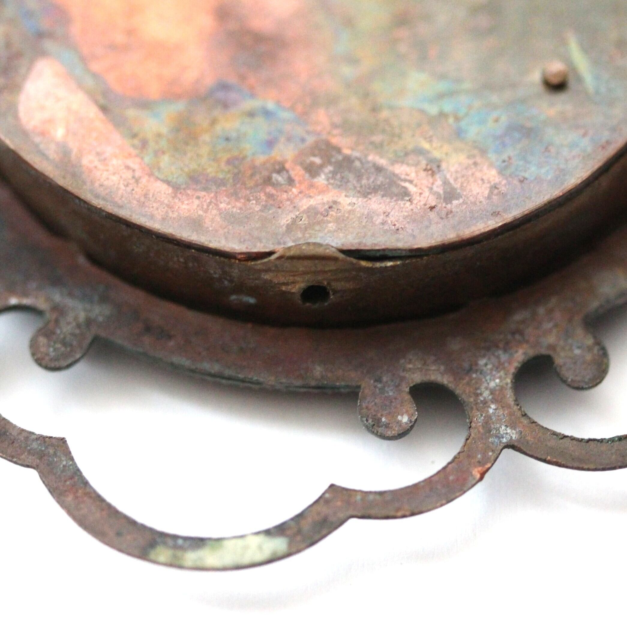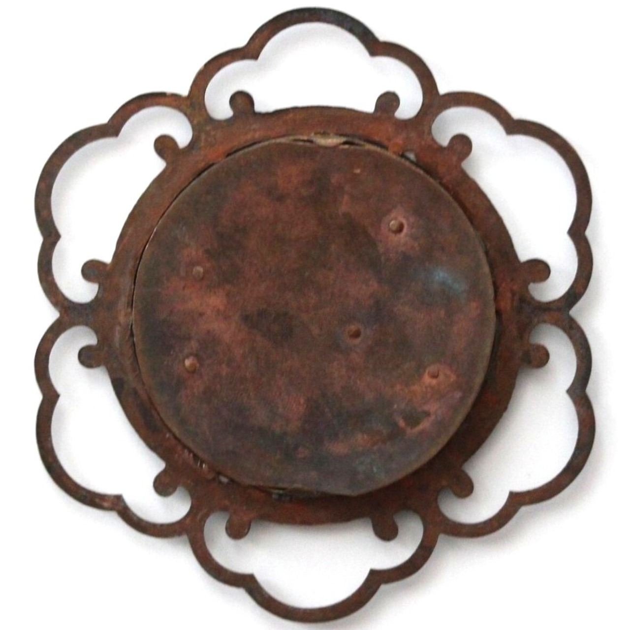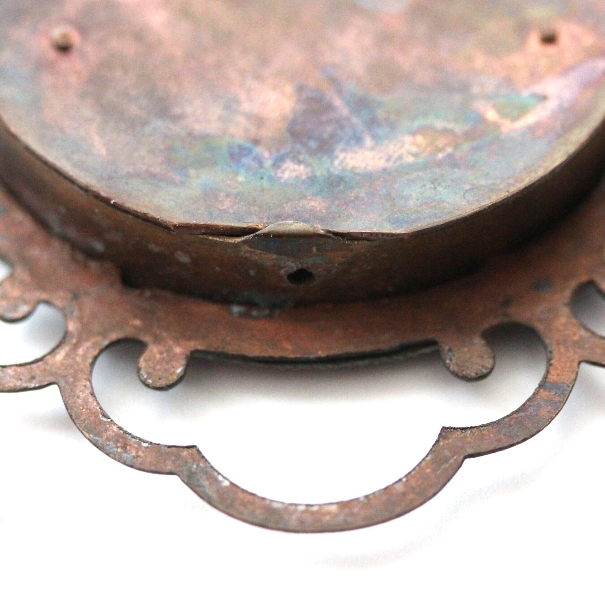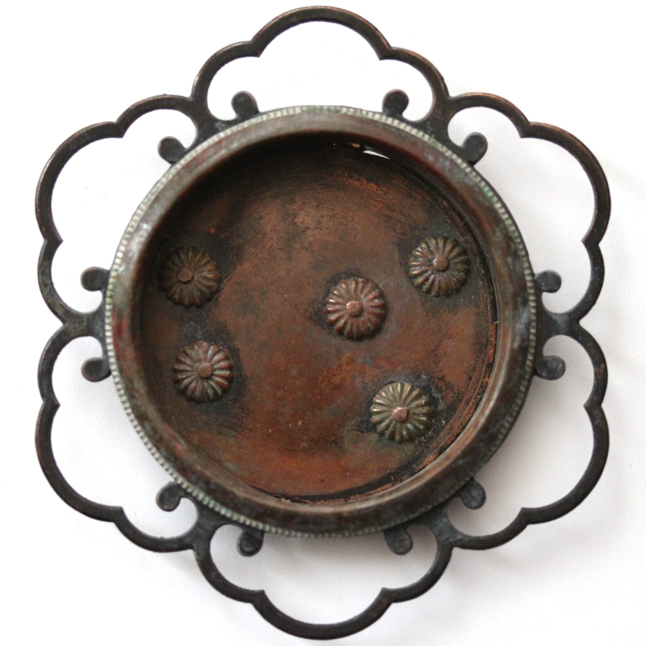 アンティーク 銅製の菊模様の引手(一対)d8.8cm Antique Japanese Copper Flower Shaped Hikite Door Pull Handles, Chrysanthemums Design | monotone