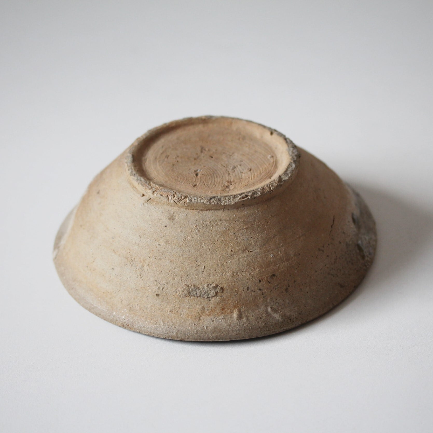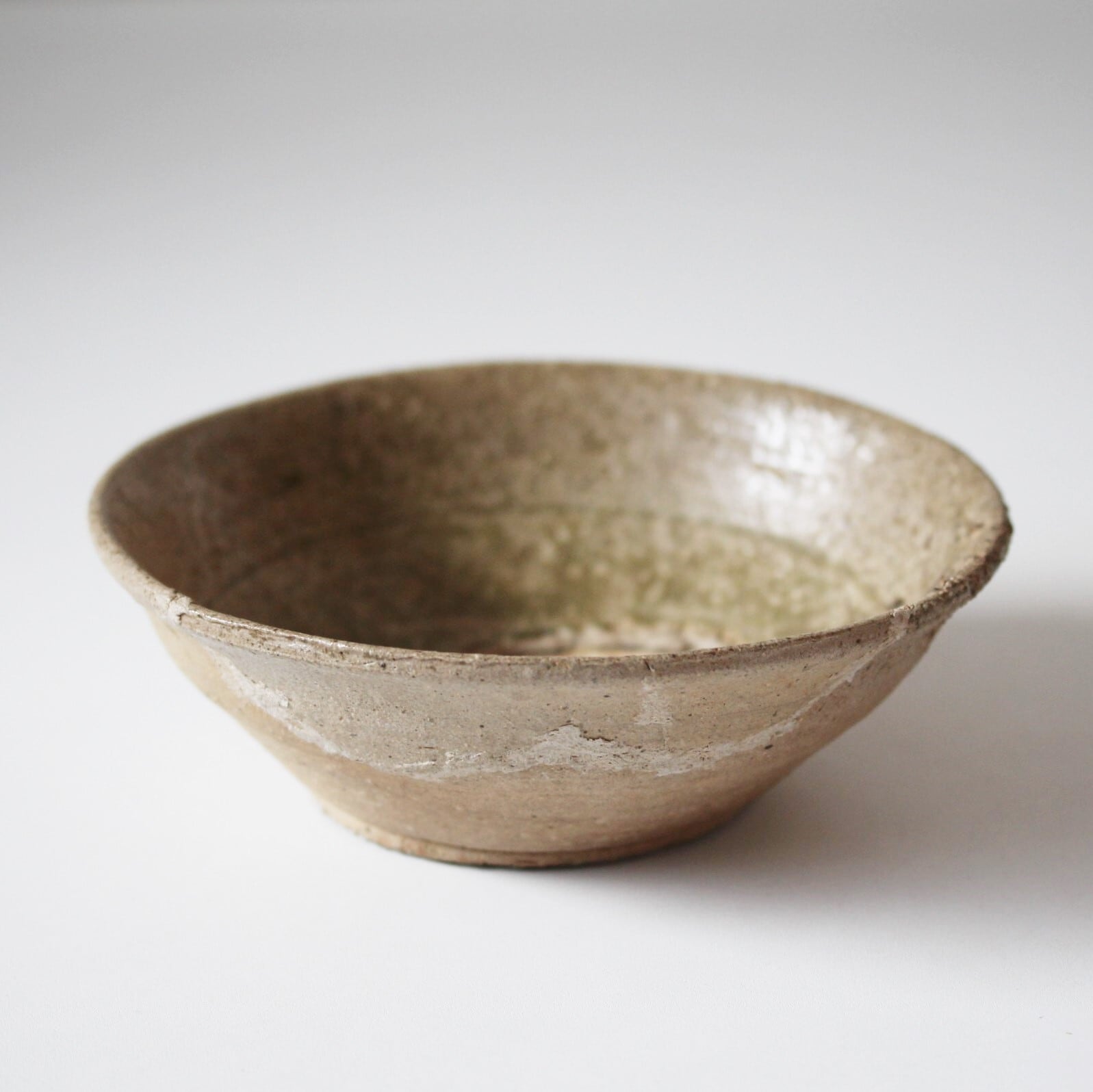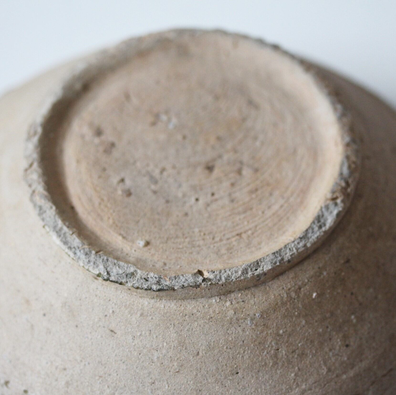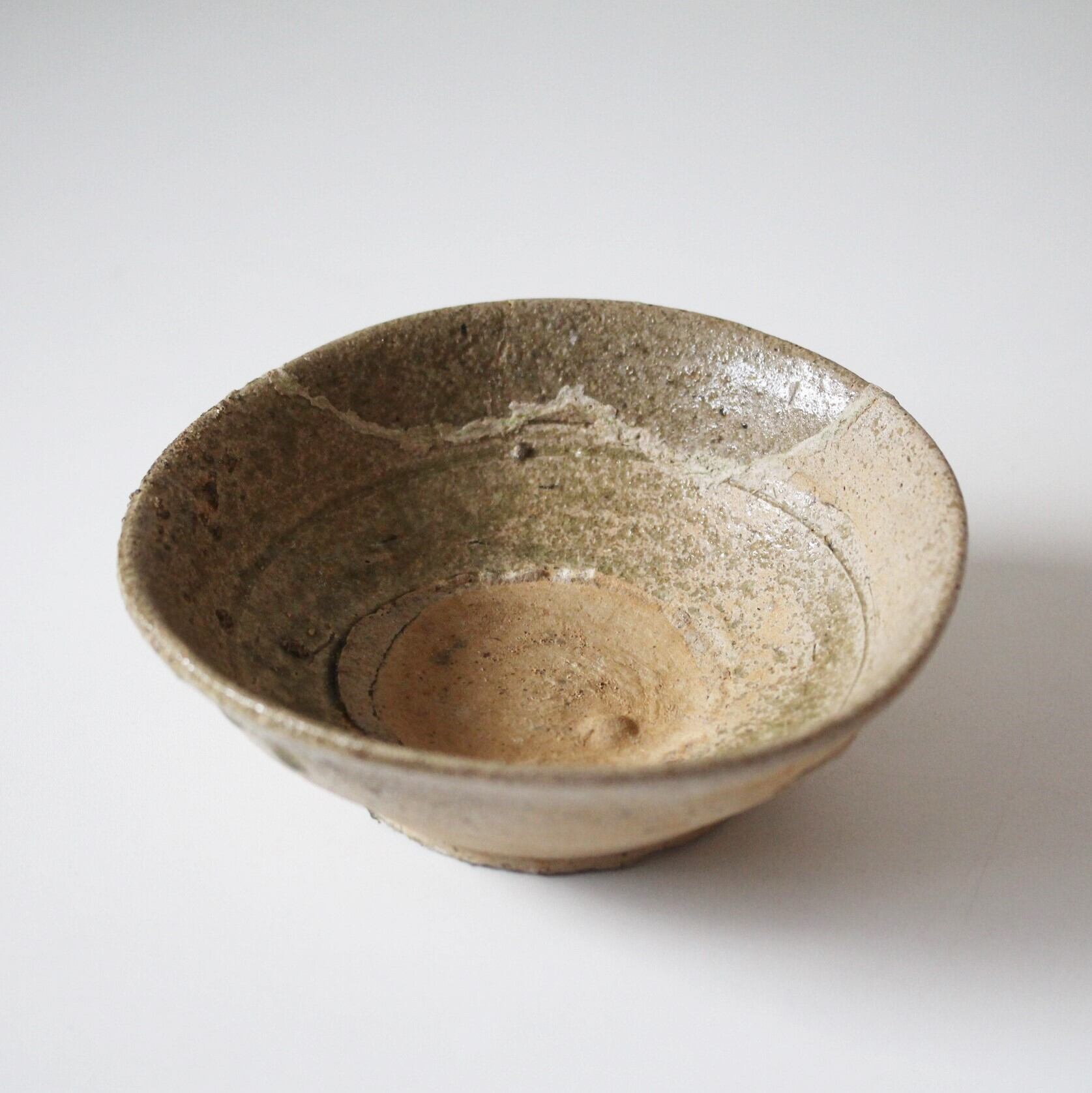 口縁の約4分の1が、他の碗の濃い目のグリーンの陶片で呼び継がれています。