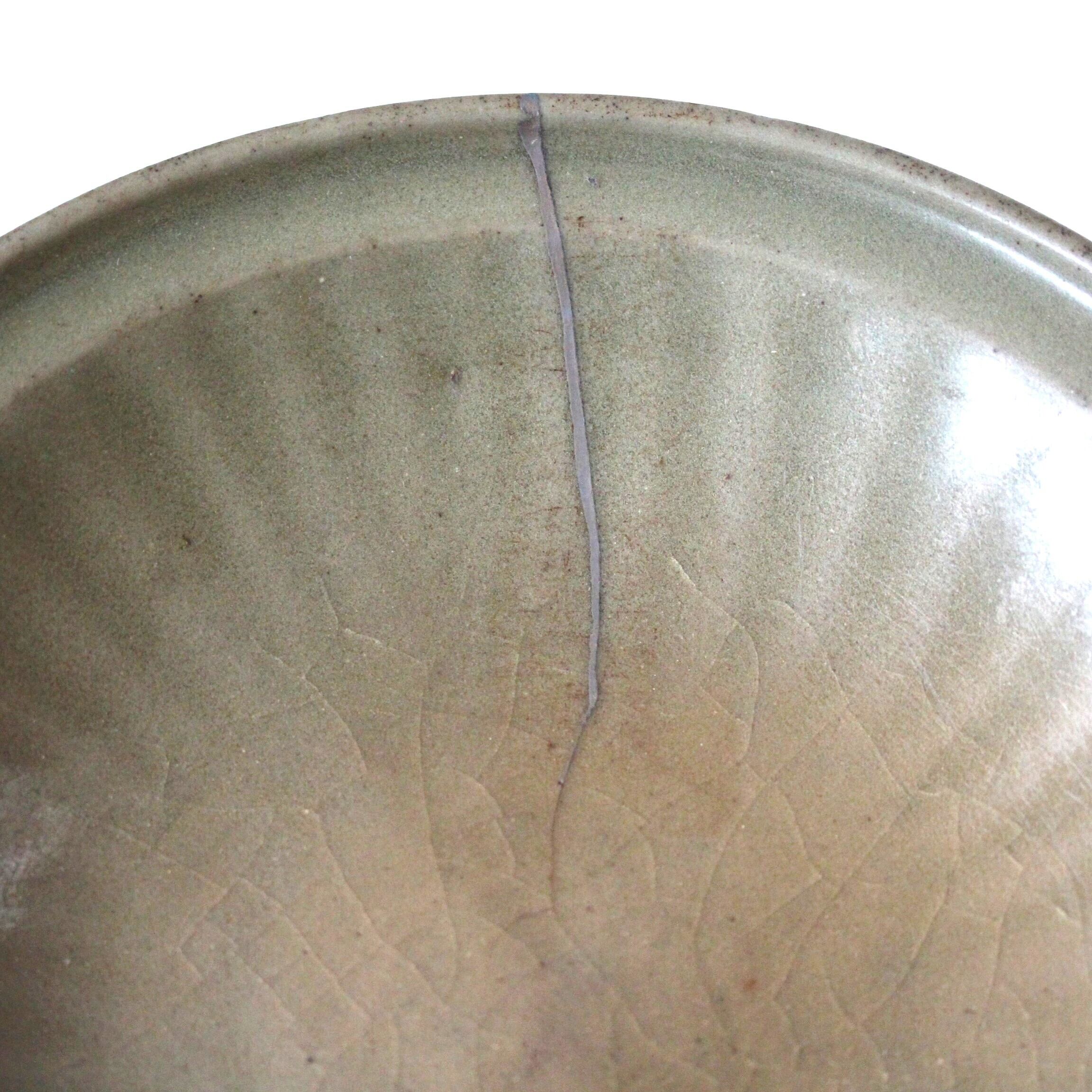天龍寺青磁の鎬文の平鉢 d27.2cm Antique Chinese Celadon Plate, Longquan Kiln