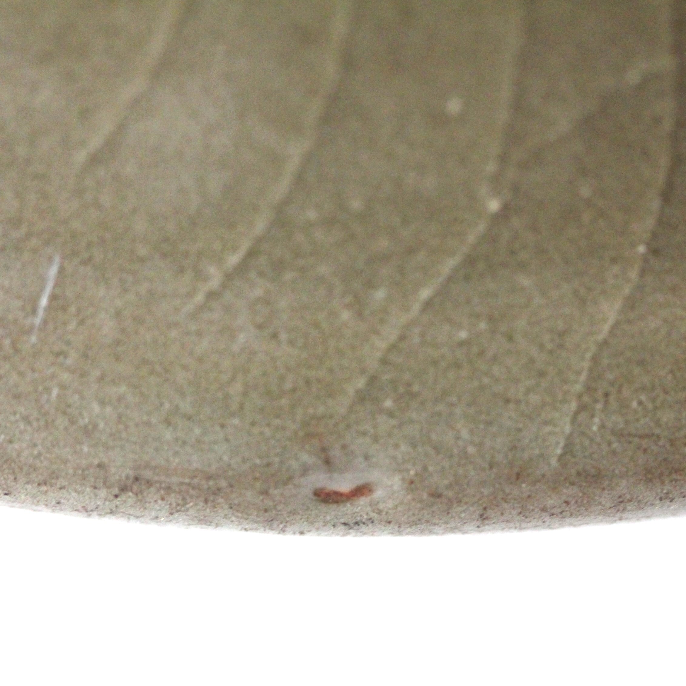 窯の中の焼成温度が少し低めだったのでしょう。表裏に貫入が生じているほか、やや黄味がかって発色した箇所が見られます。