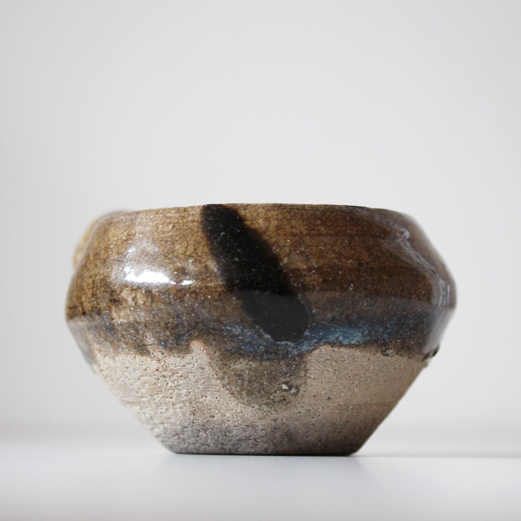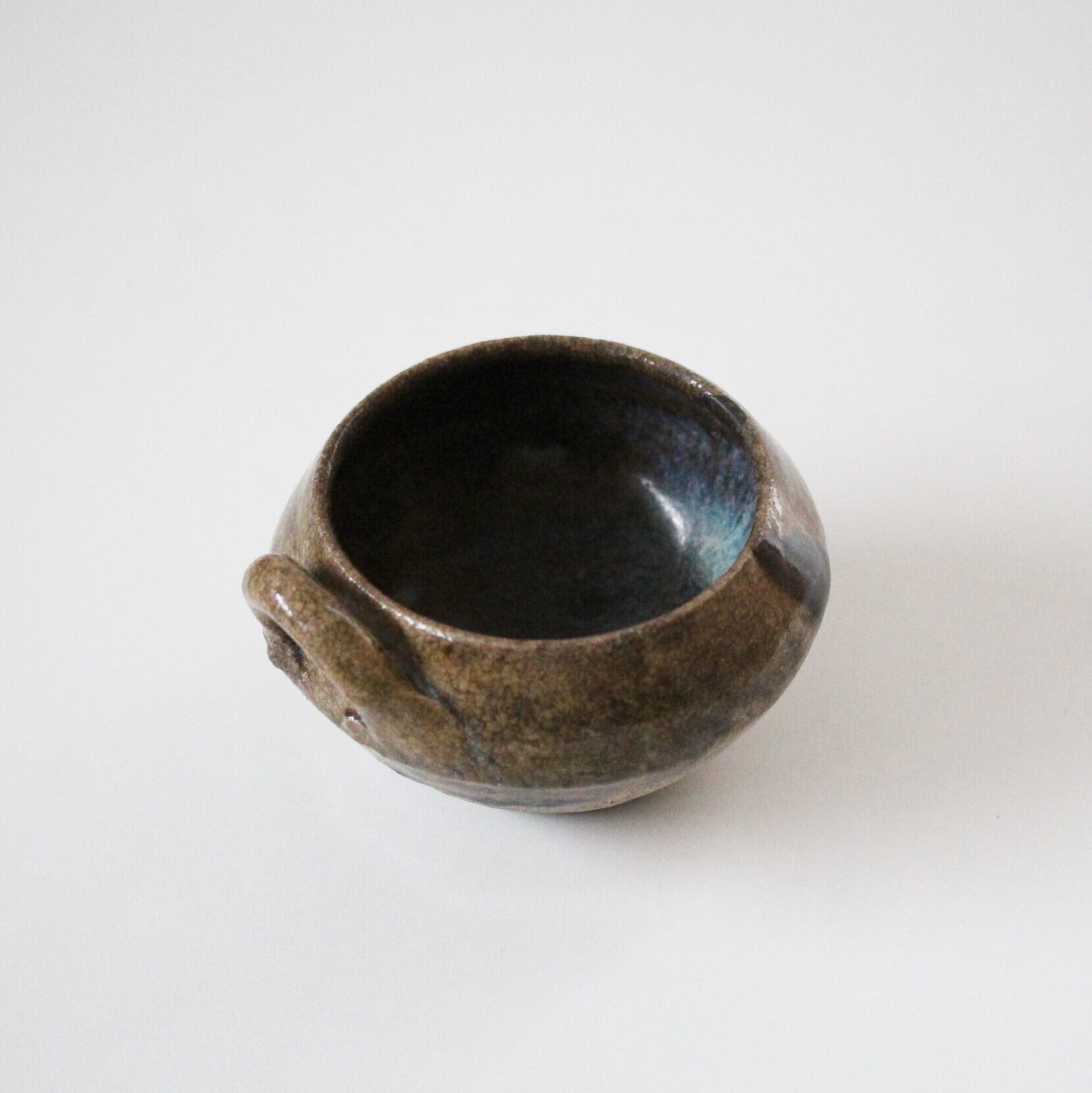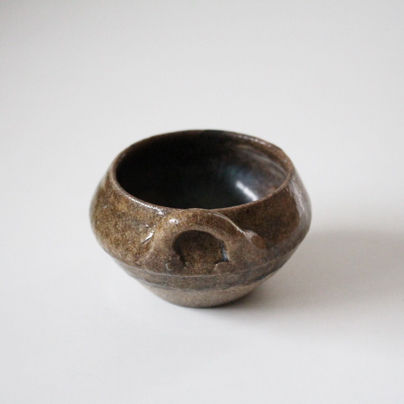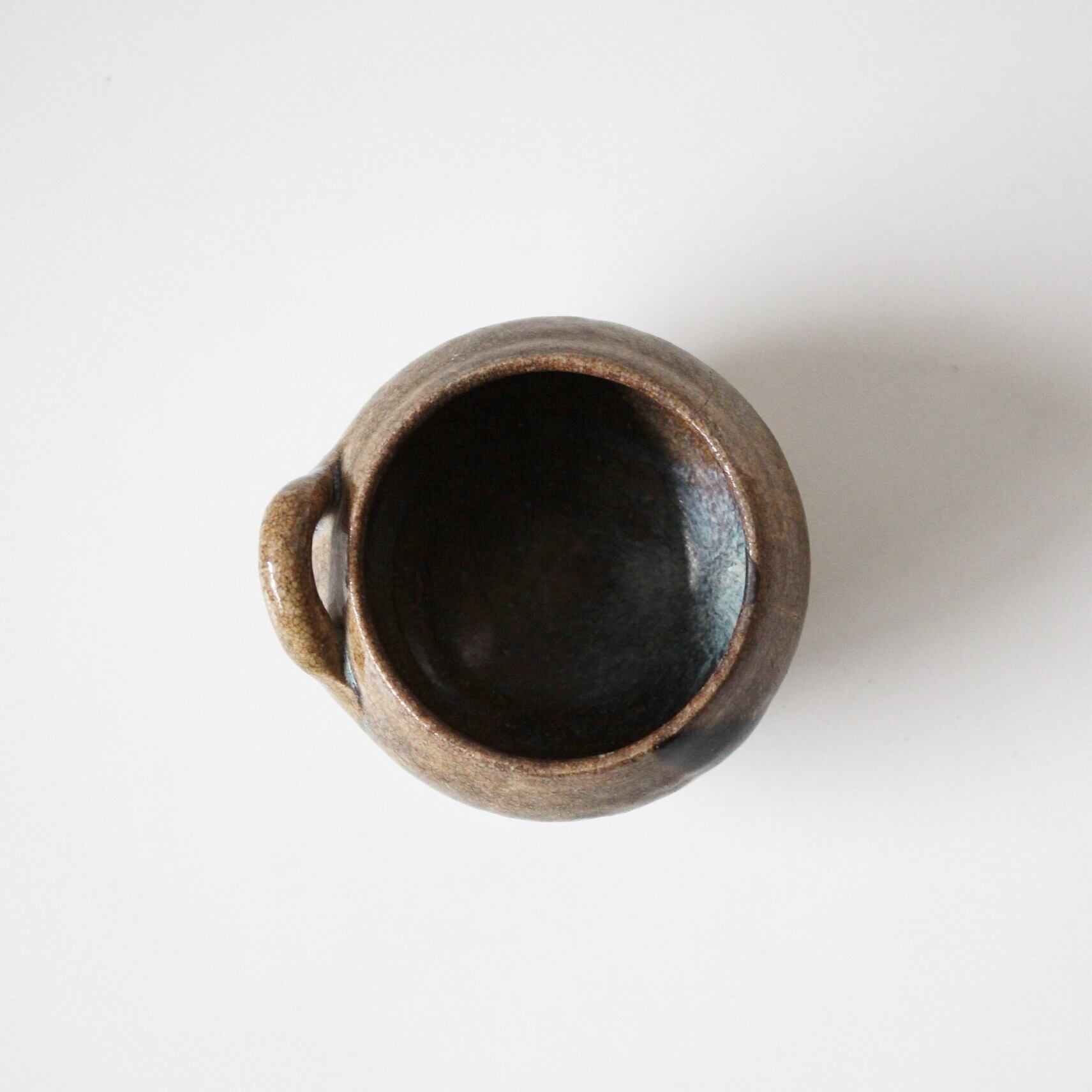 ひとつだけ手(耳)が付き、内外に藁灰釉が施されています。