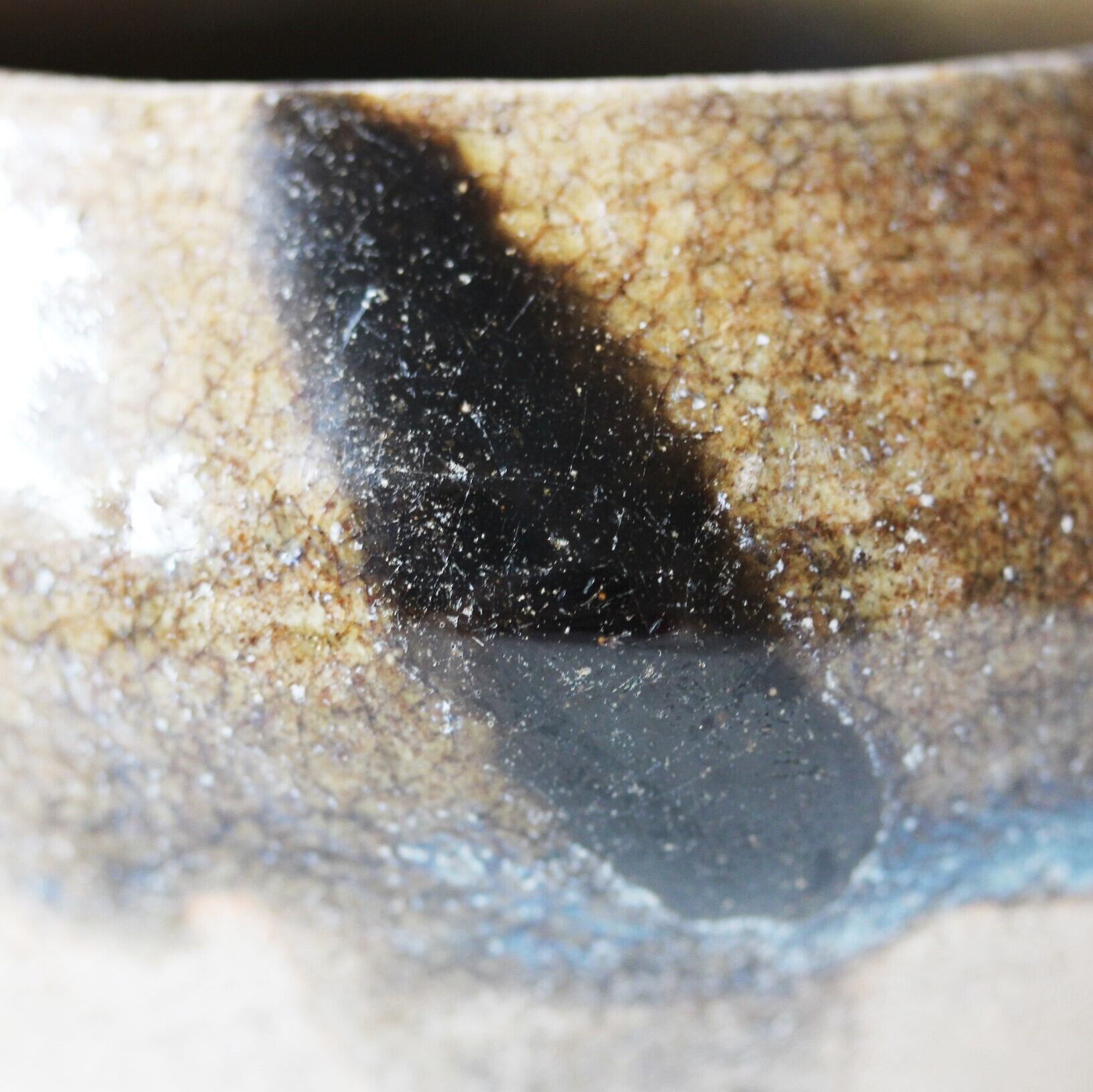 グリーンがかった暗い肌に白濁した釉が浮かび上がる様子は、水をも連想させるものです。