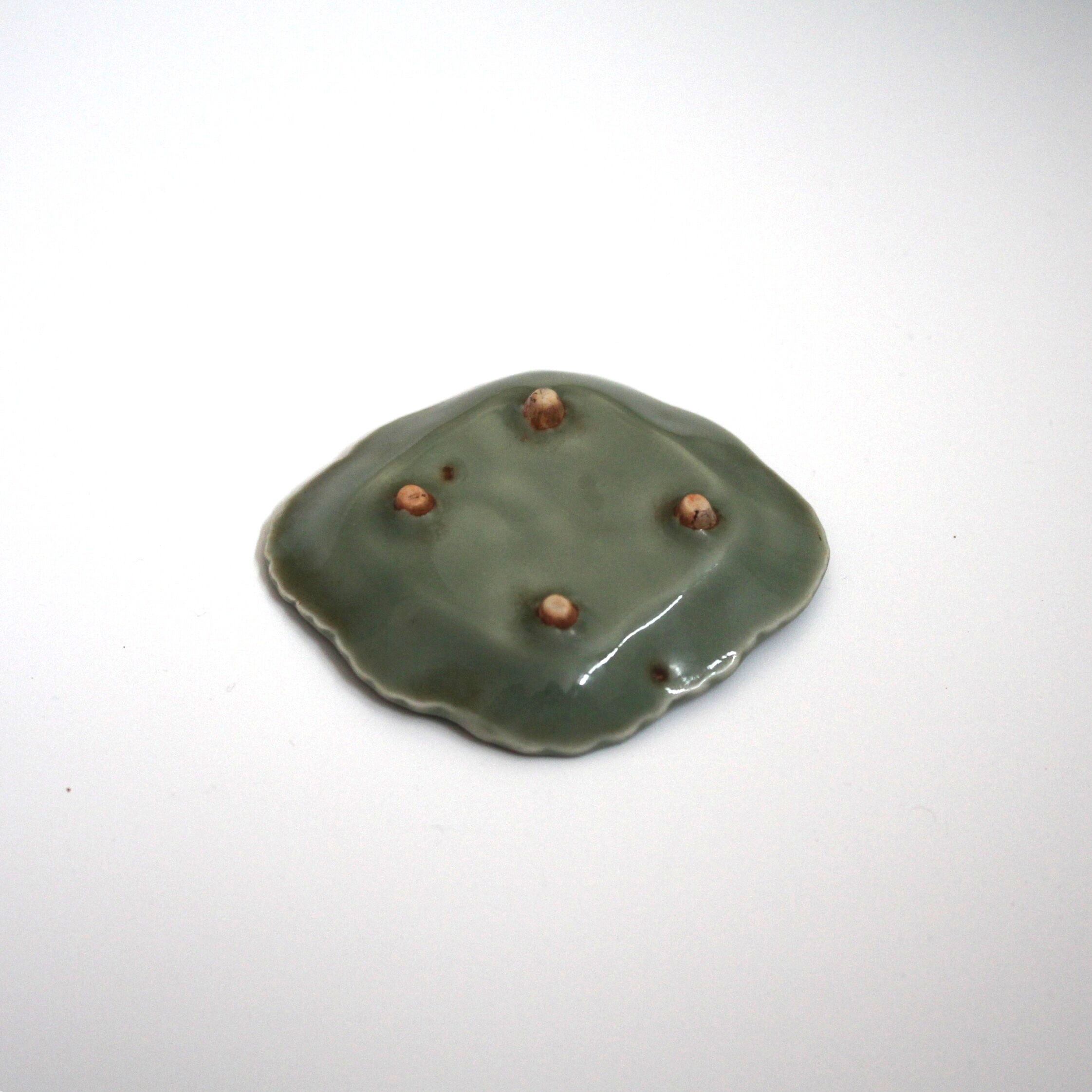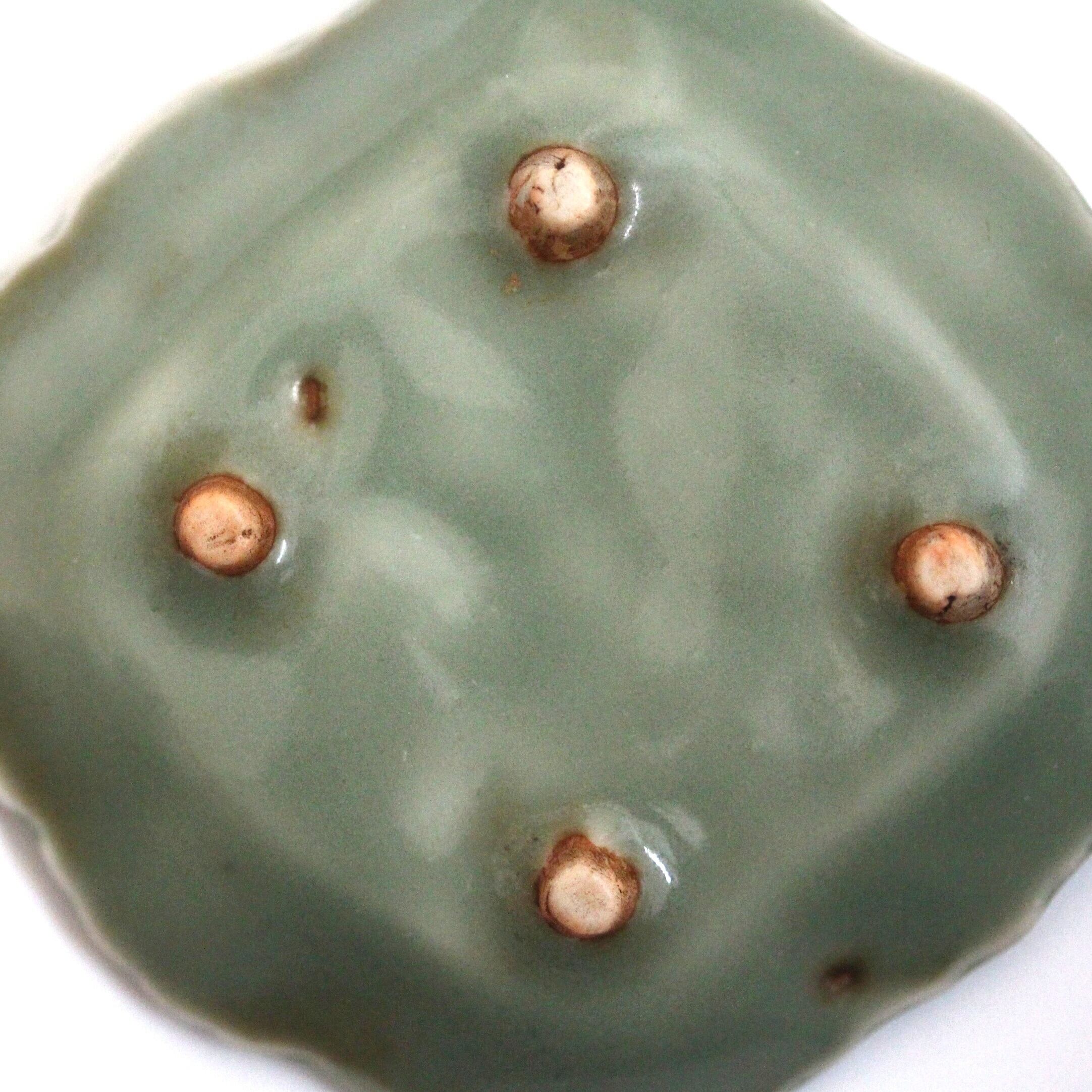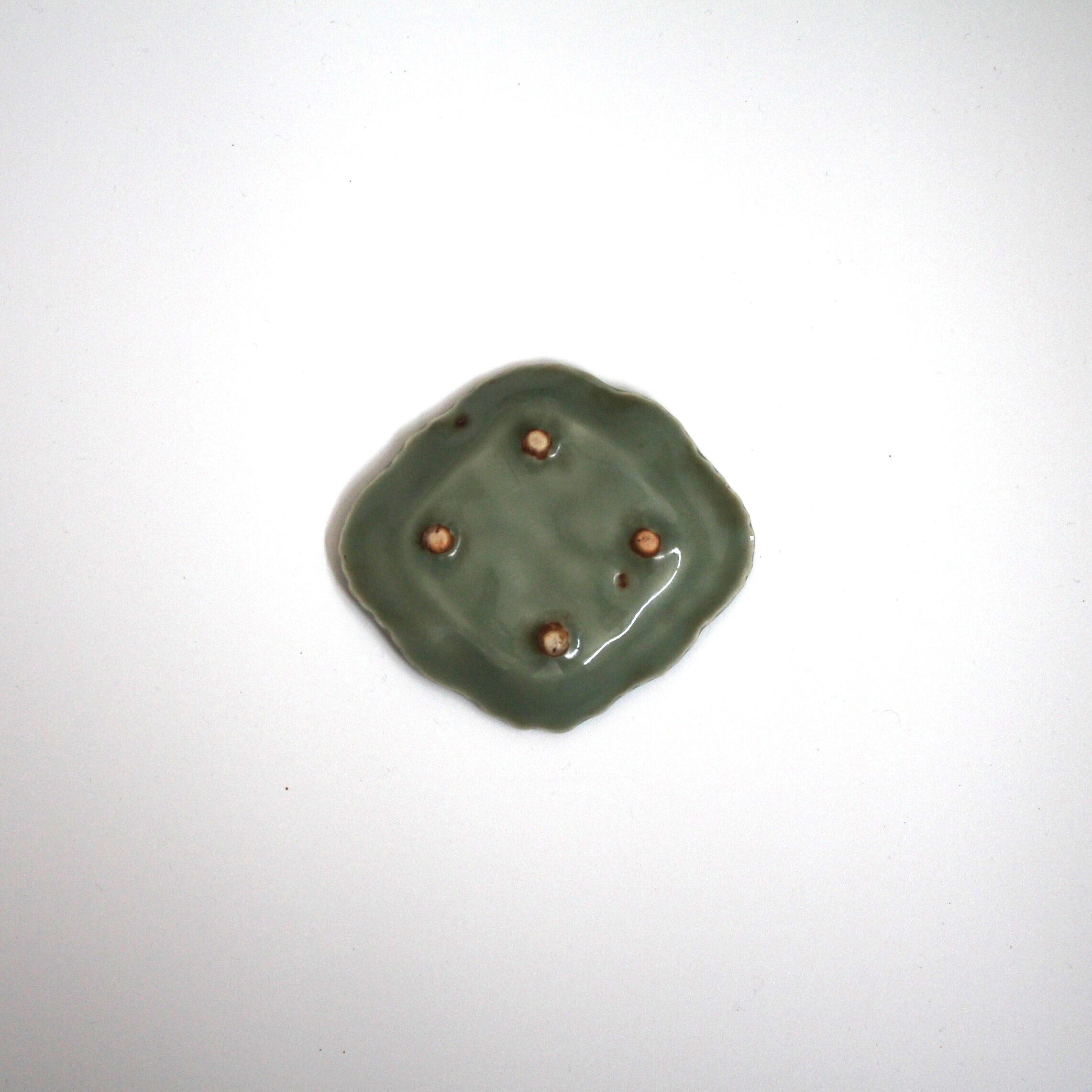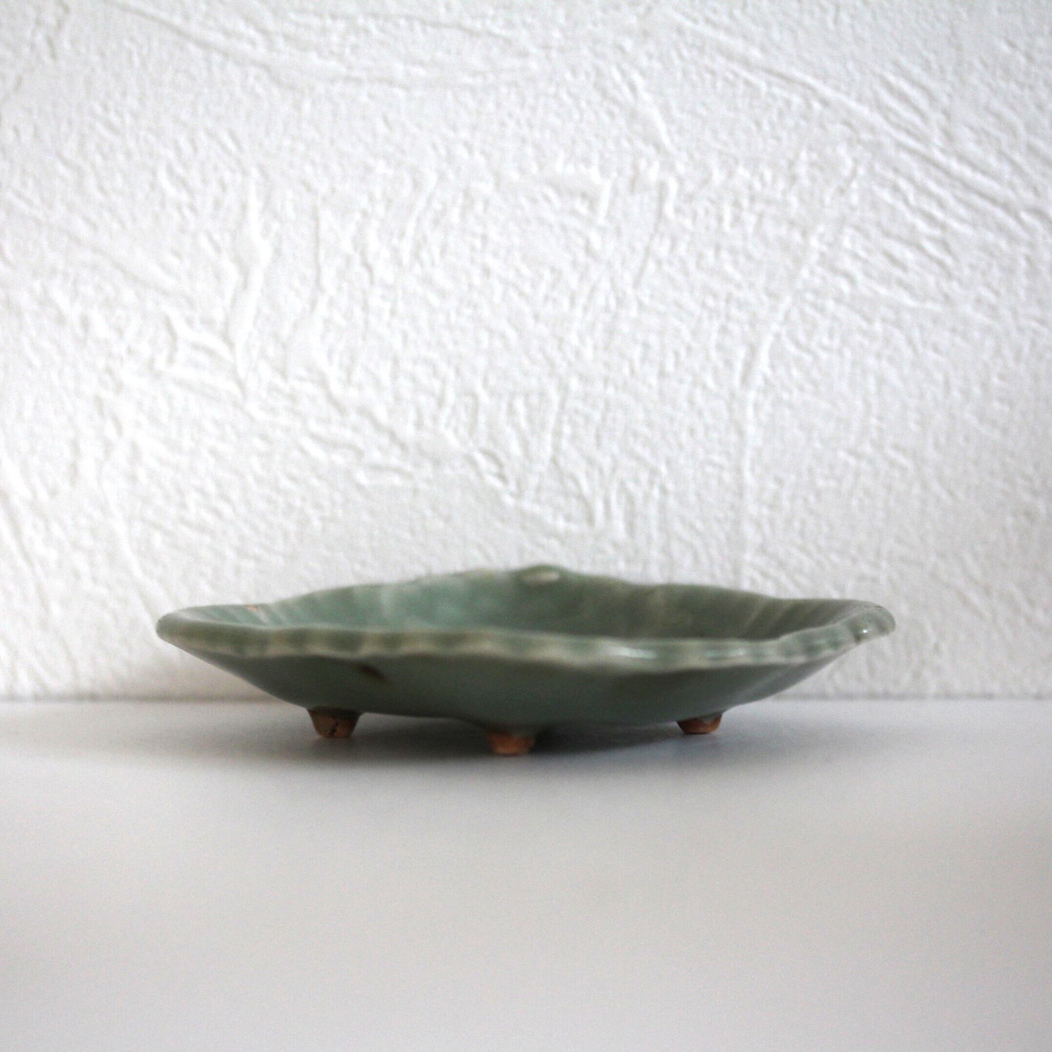 4つの低い足が付いた、青磁の小さなうつわです。