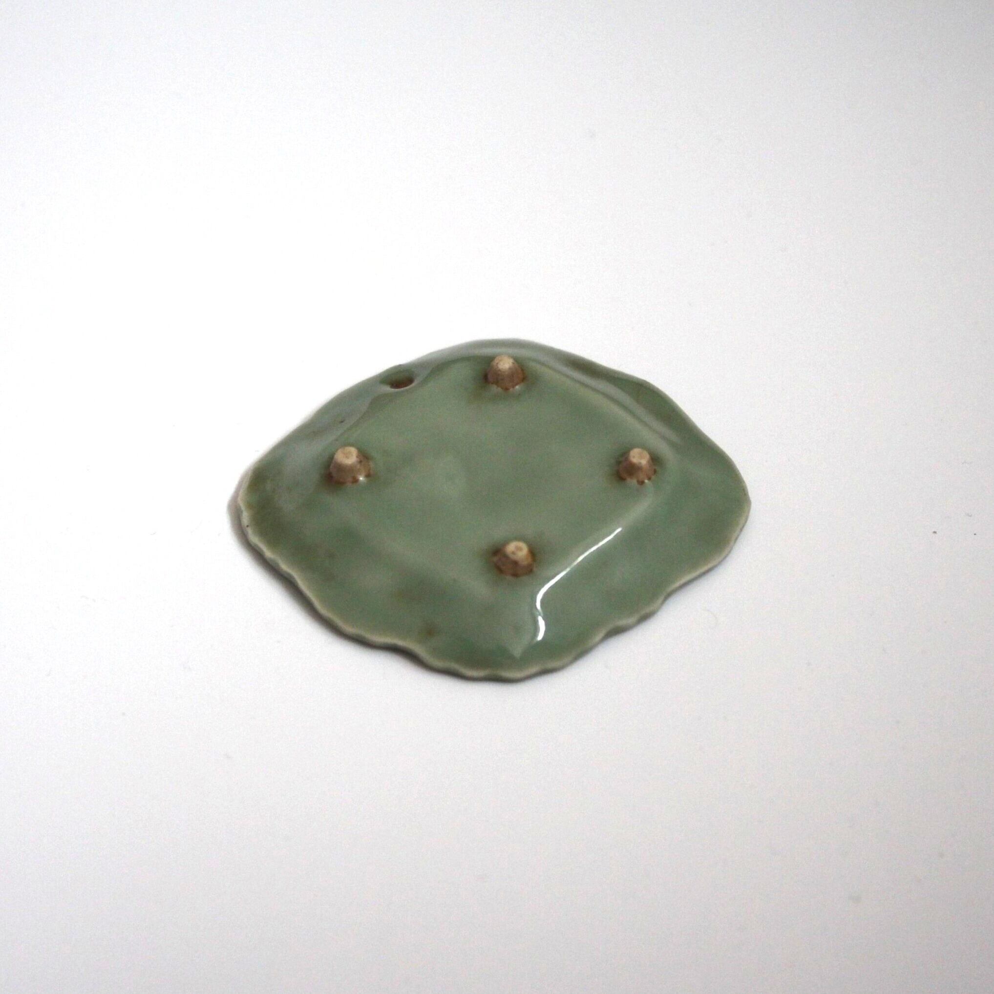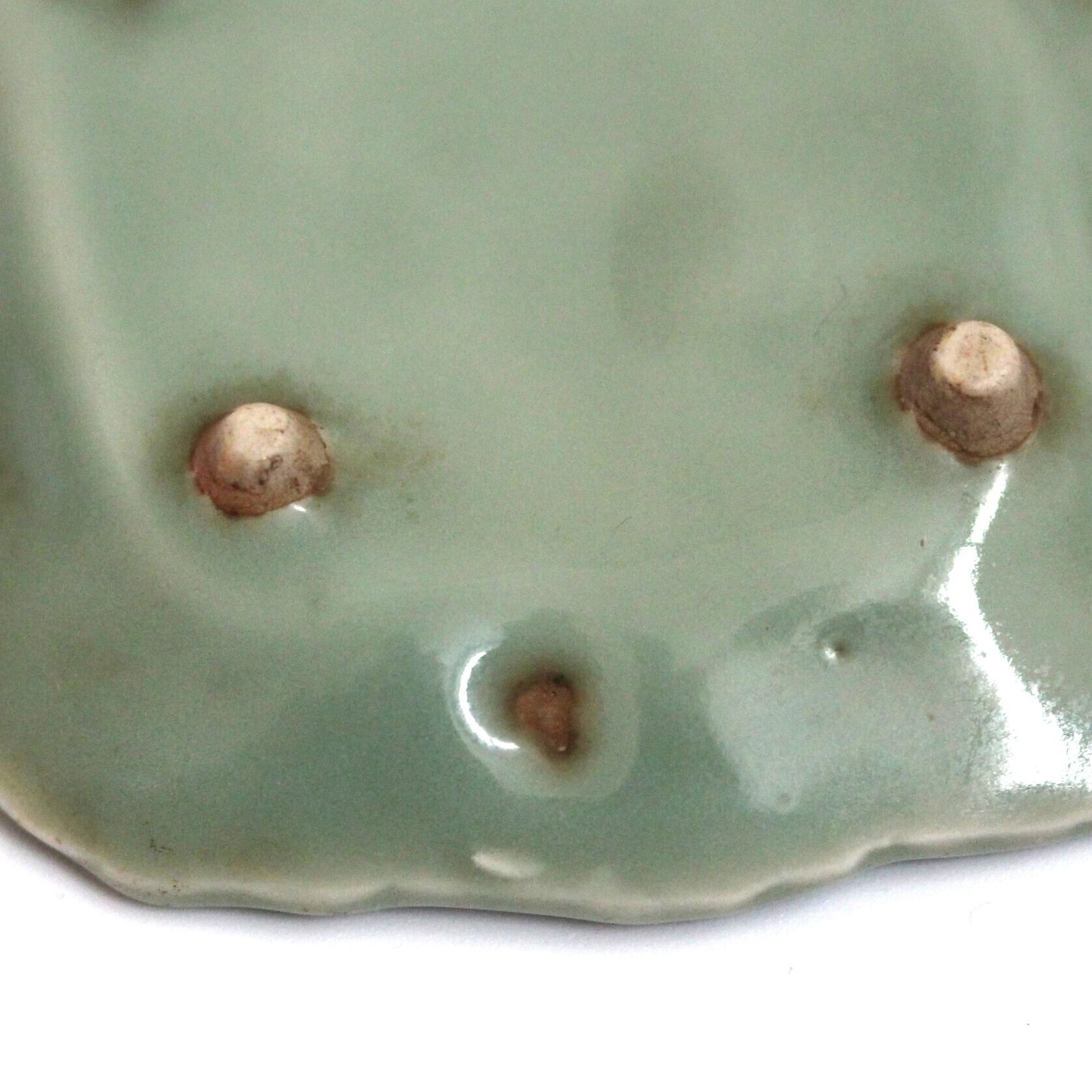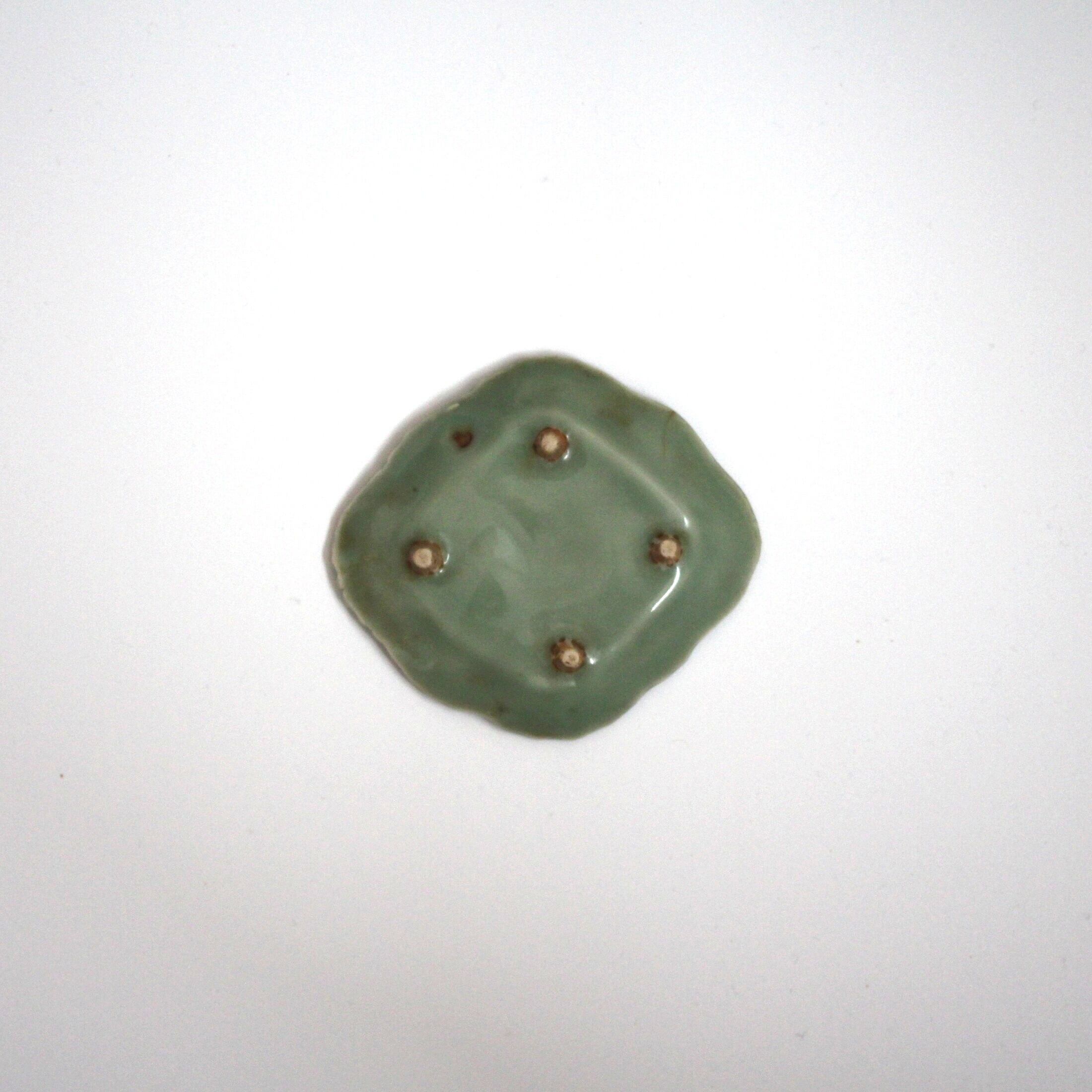 三田青磁の双鶴文の菱形小皿(その6)d9.7cm Antique Japanese Celadon Rhombus Small Dish, Embossed Design of Cranes, Sanda Kiln | monotone