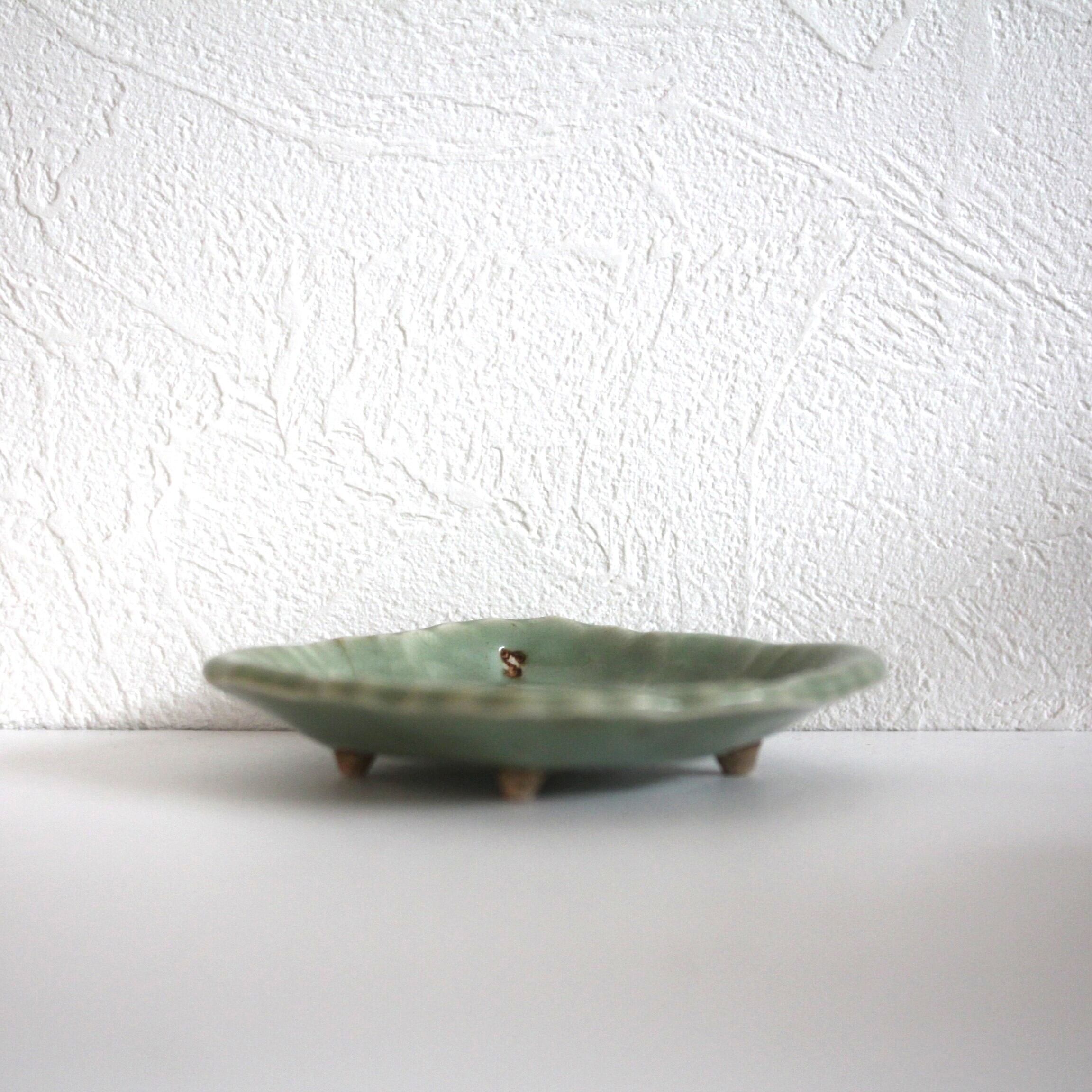 4つの低い足が付いた、青磁の小さなうつわです。