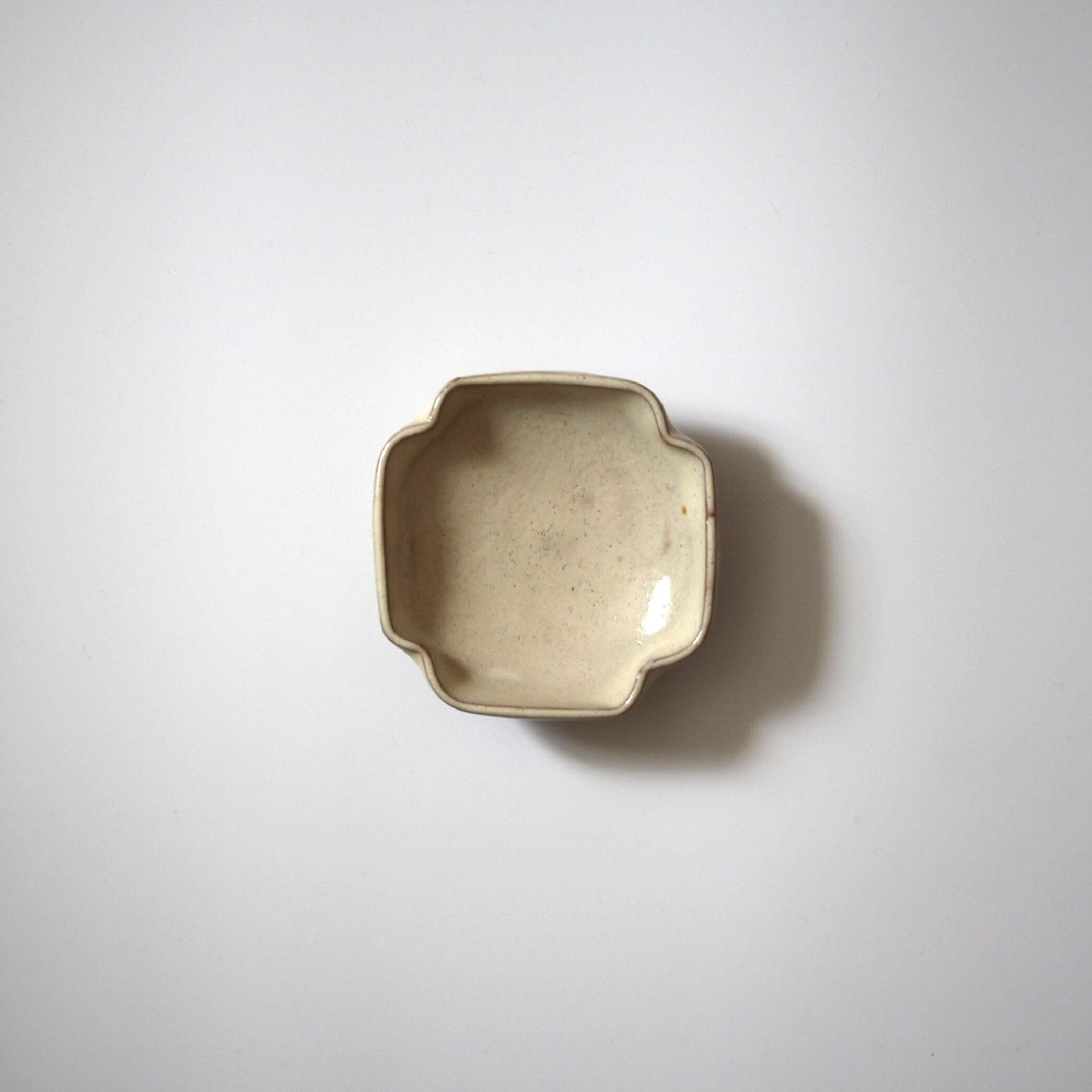 四方をへらで押さえて隅入(すみいり)の器形に。
