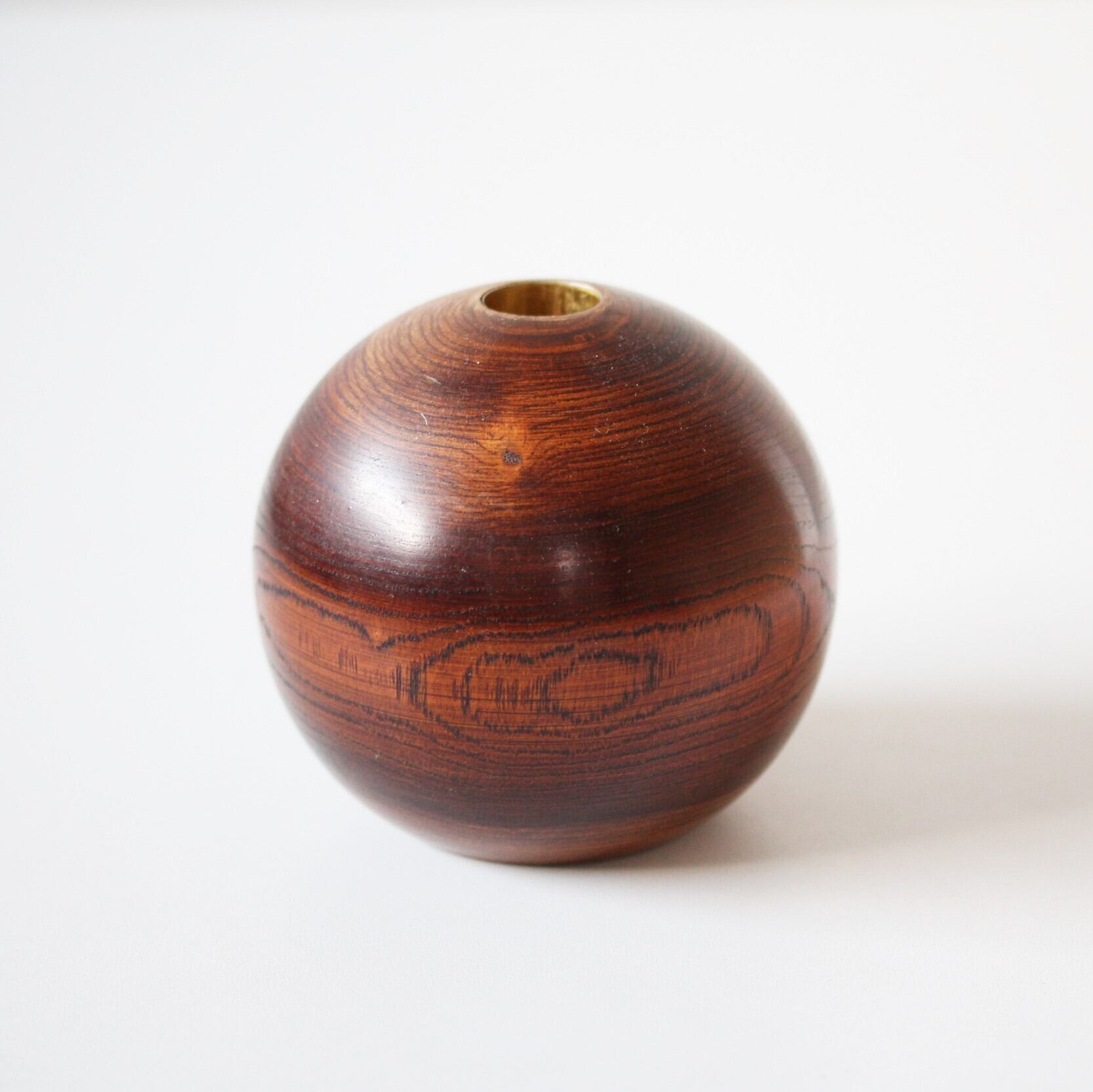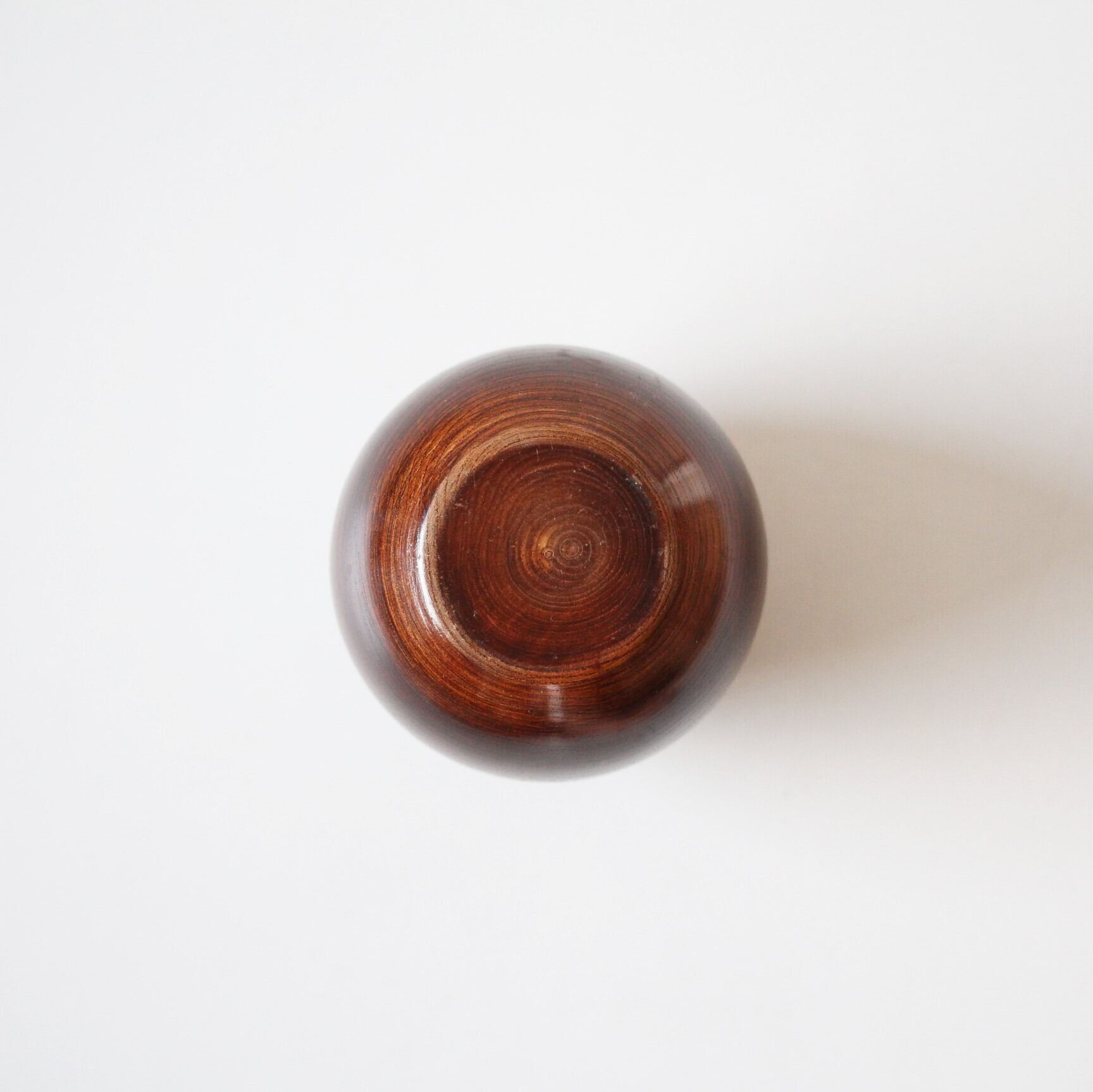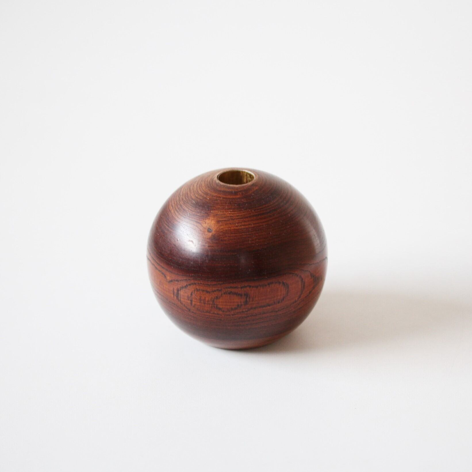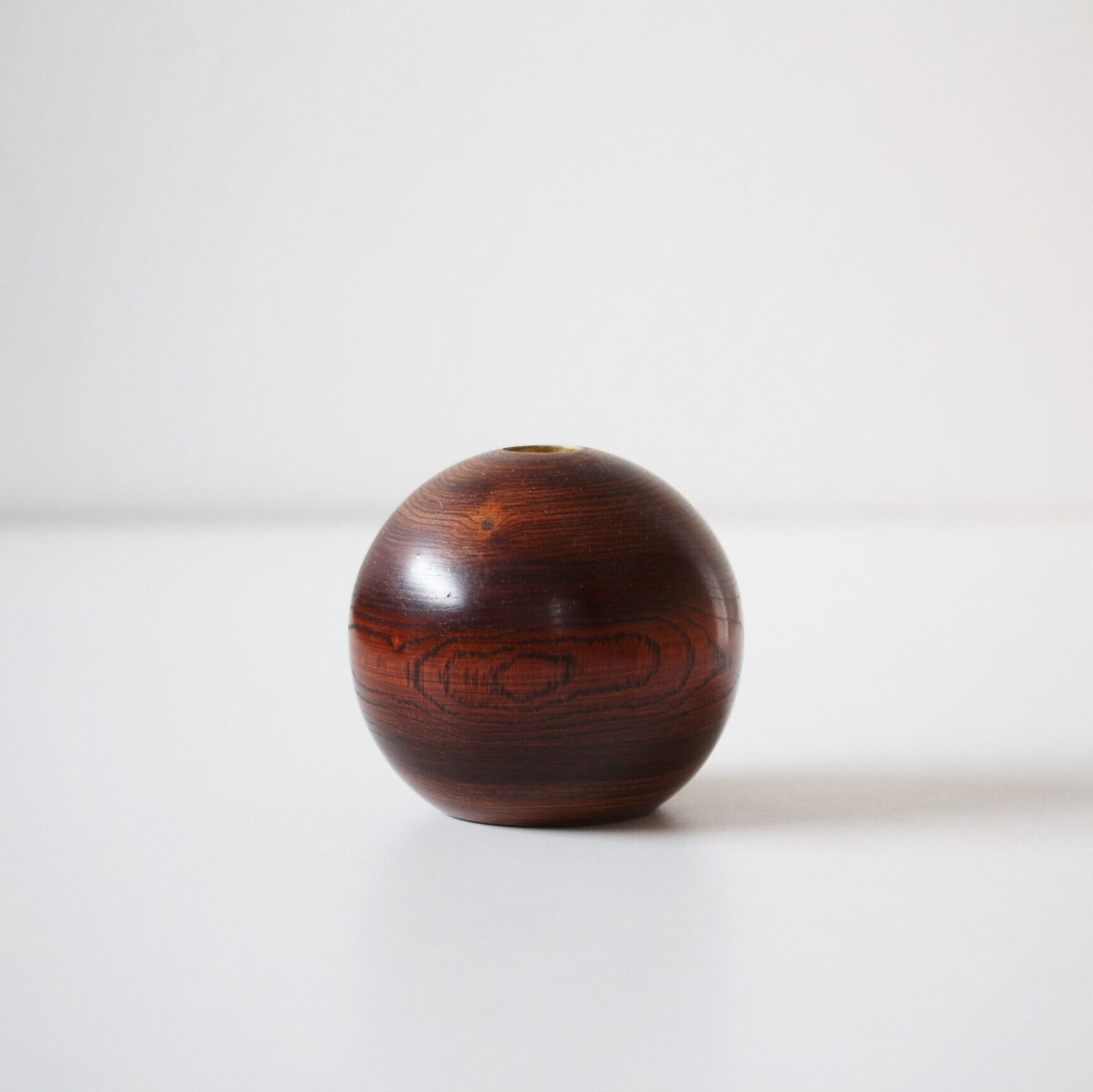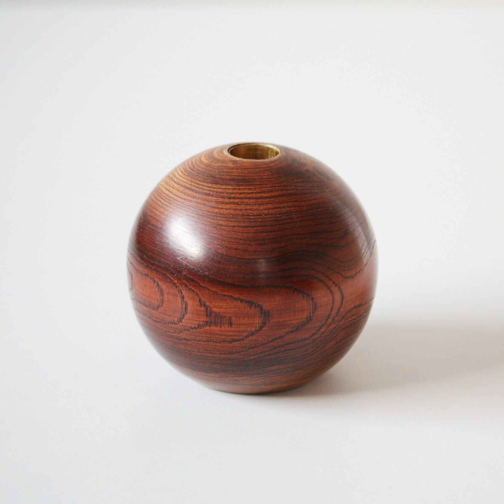 A charming spherical shaped small vase made of wood, likely Japanese Zelkova.