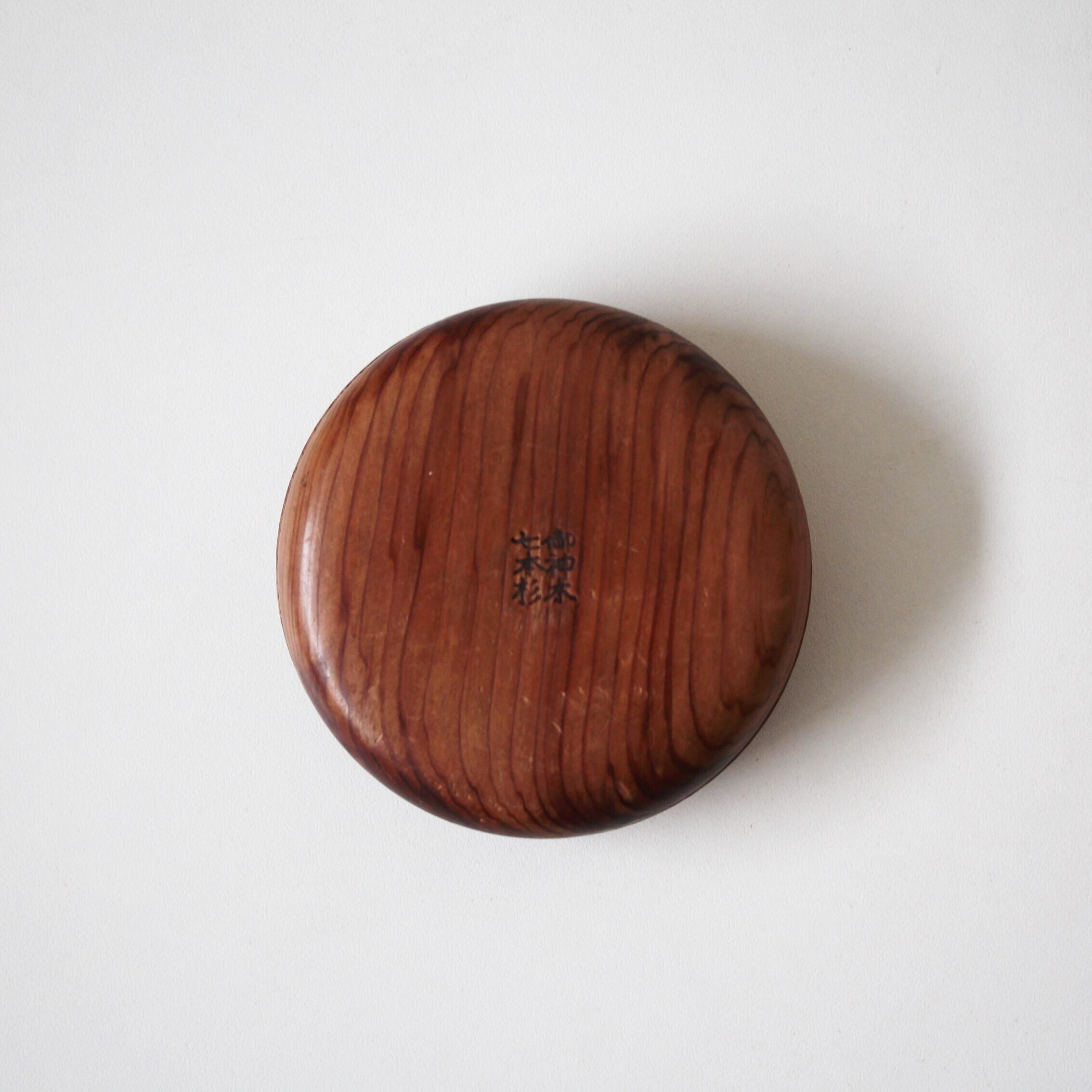 アンティーク 御神木七本杉香合 d8.4cm Antique Japanese Wooden Incense Container Made of Sacred Cedar Tree | monotone