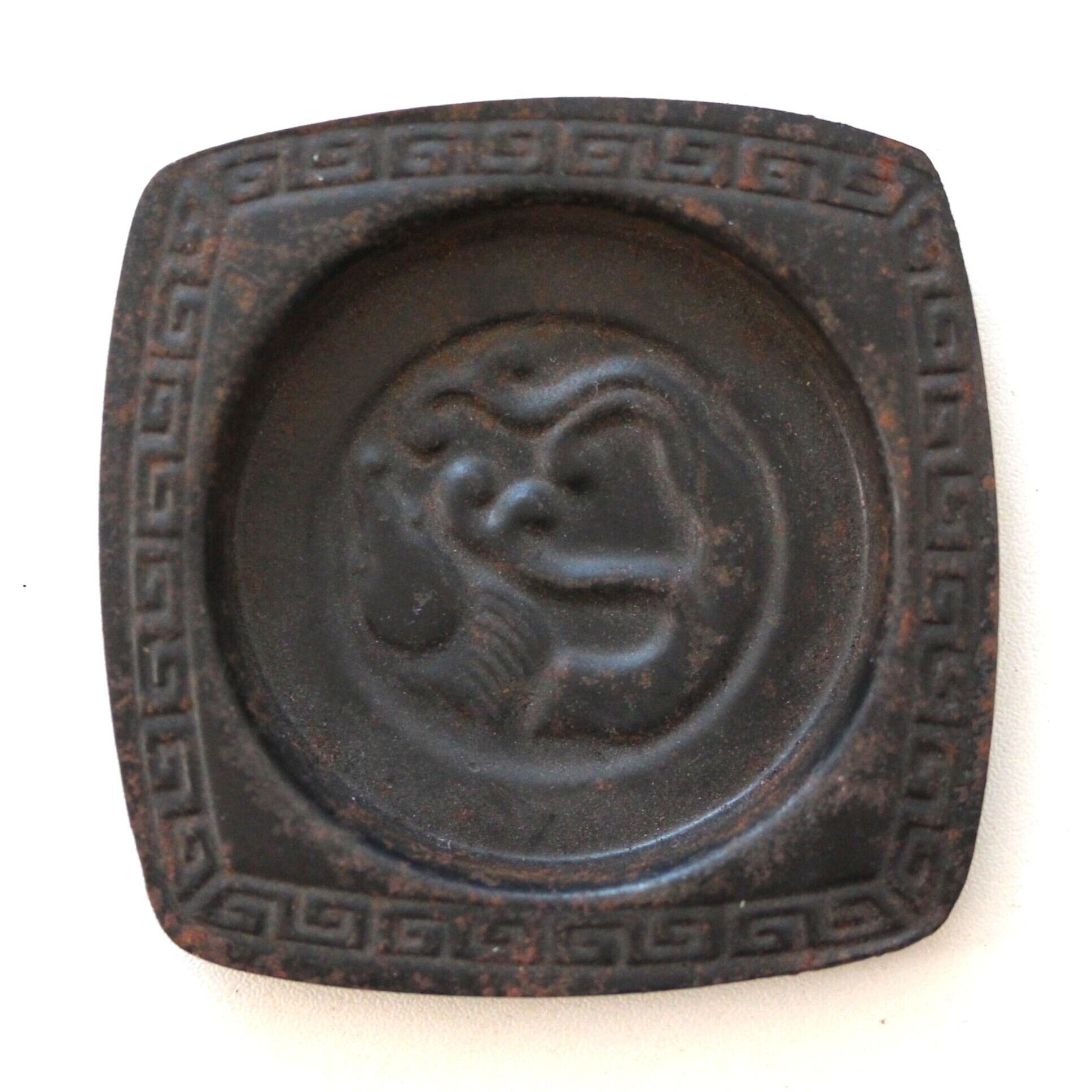 ヴィンテージ 雨龍の鉄製金具 d7.2cm Vintage Japanese Iron Square Hikite Sliding Door Handle, Baby Dragon Design | monotone